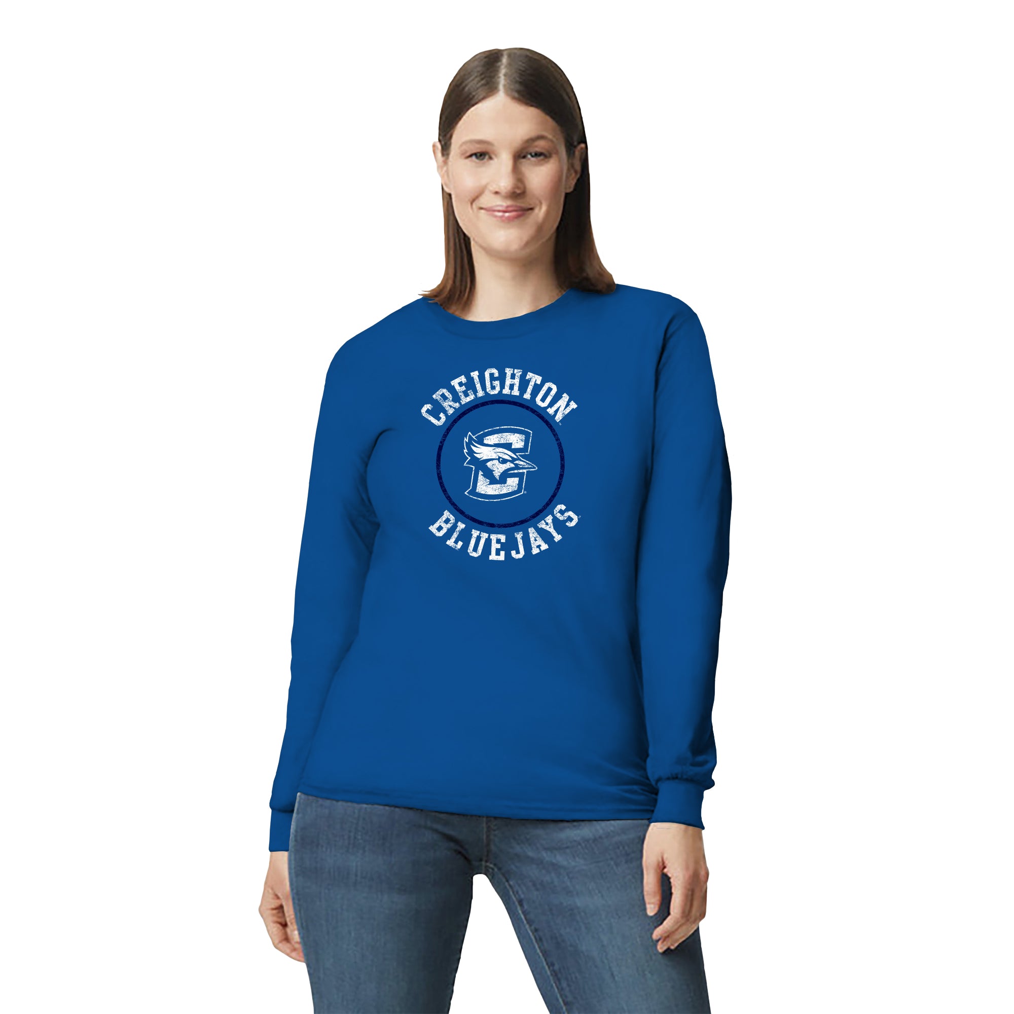 Creighton University Bluejays Distressed Circle Logo Long Sleeve T Shirt - Royal