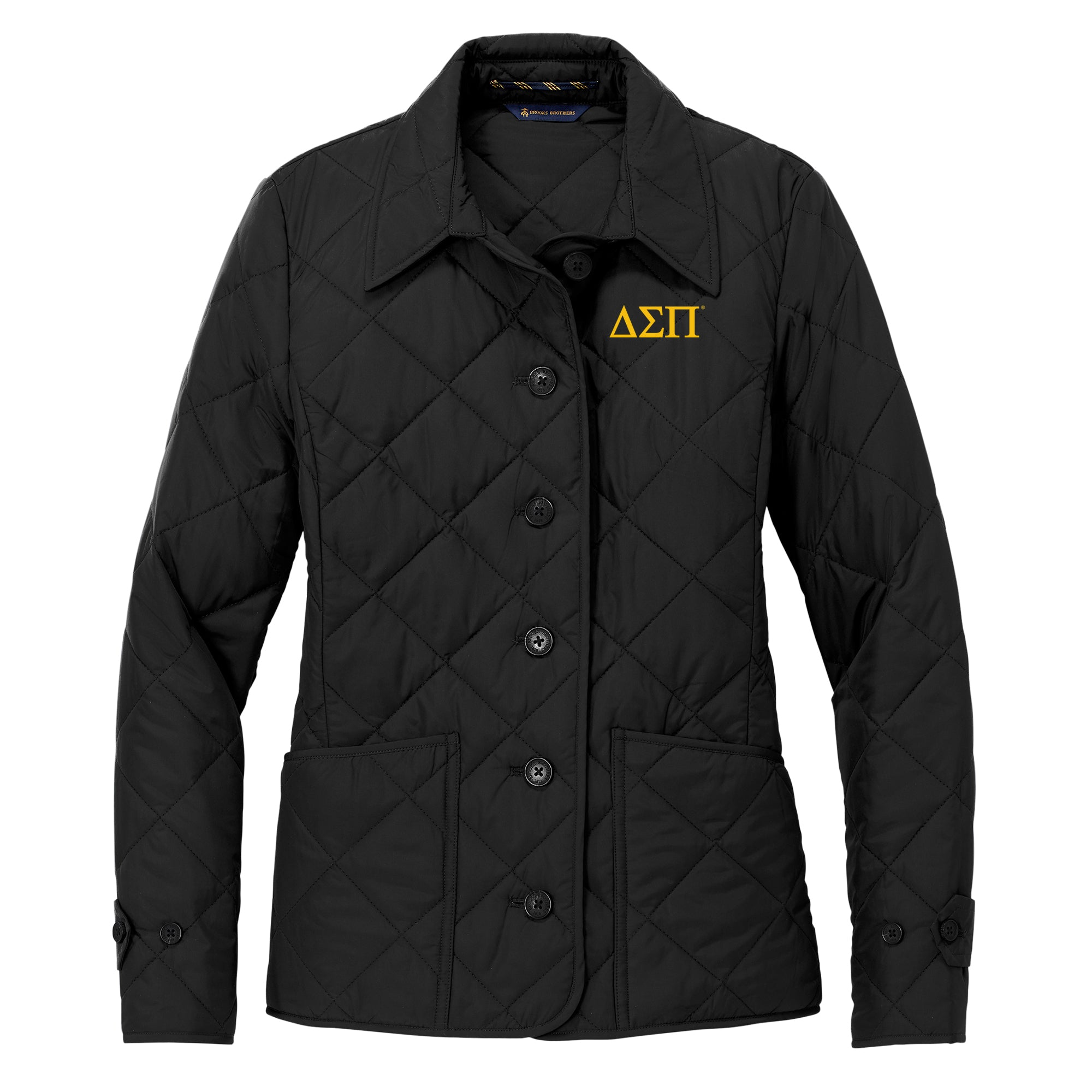 Delta Sigma Pi Greek Letter Block LC Brooks Brothers Women's Quilted Jacket - Deep Black