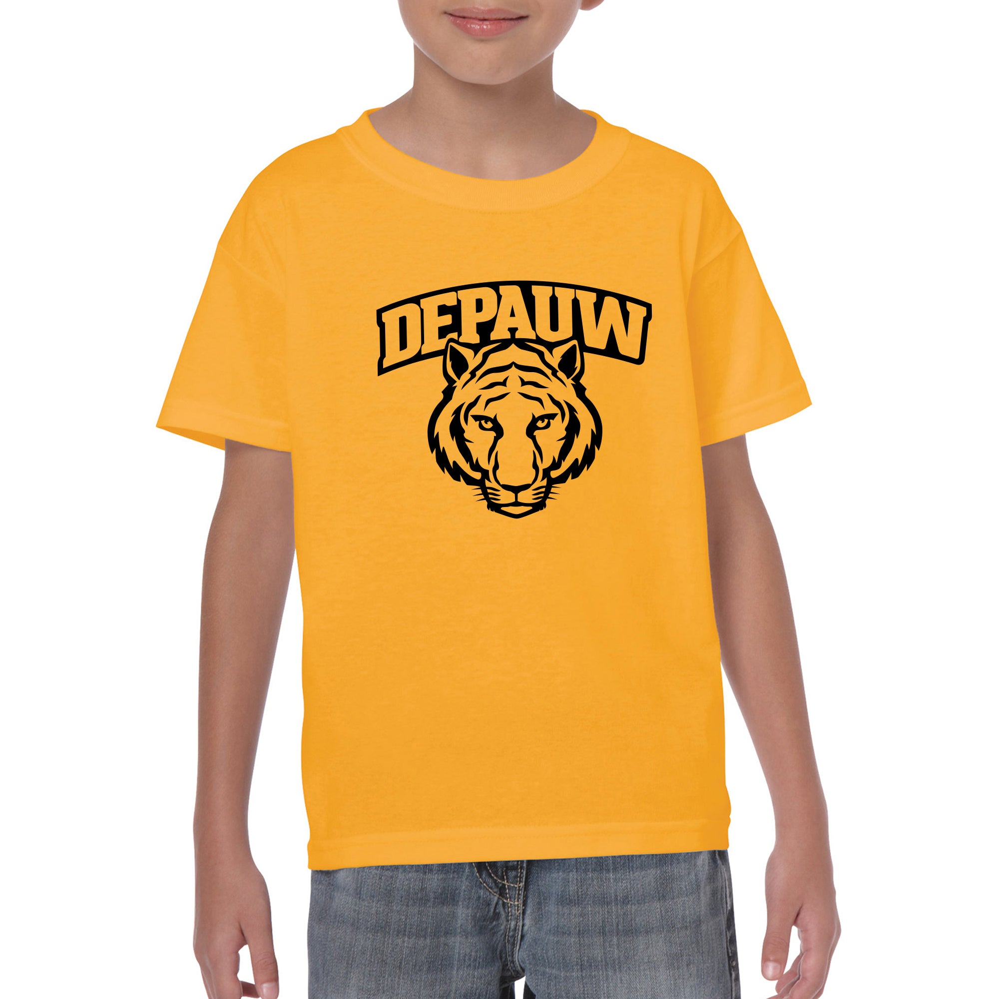 DePauw University Tigers Arch Logo Youth Short Sleeve T Shirt - Gold