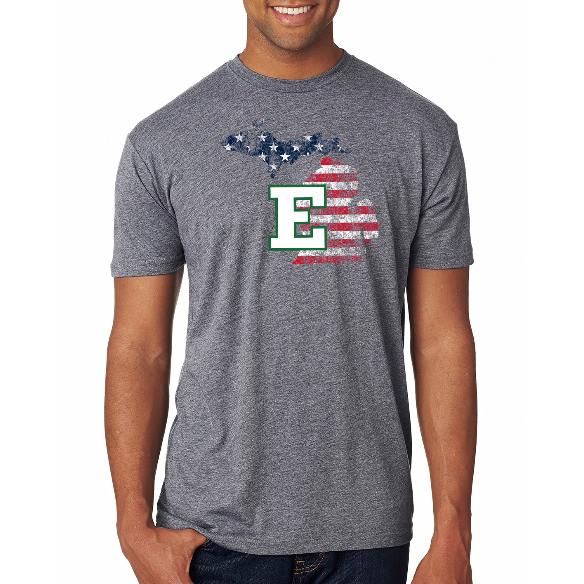 Eastern Michigan Patriotic State Silhouette NLA Triblend T-Shirt - Premium Heather