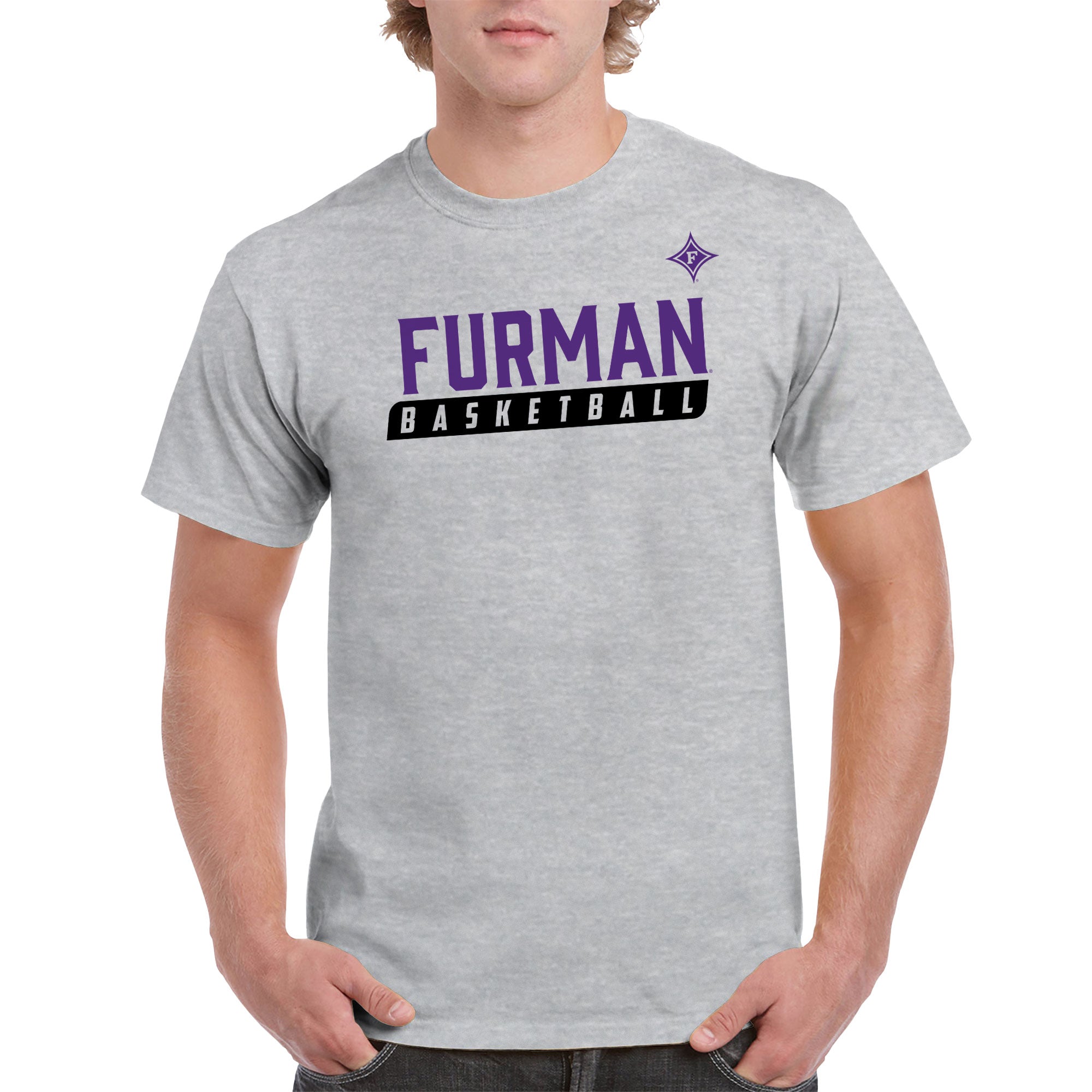 Furman University Paladins Basketball Slant T Shirt - Sport Grey