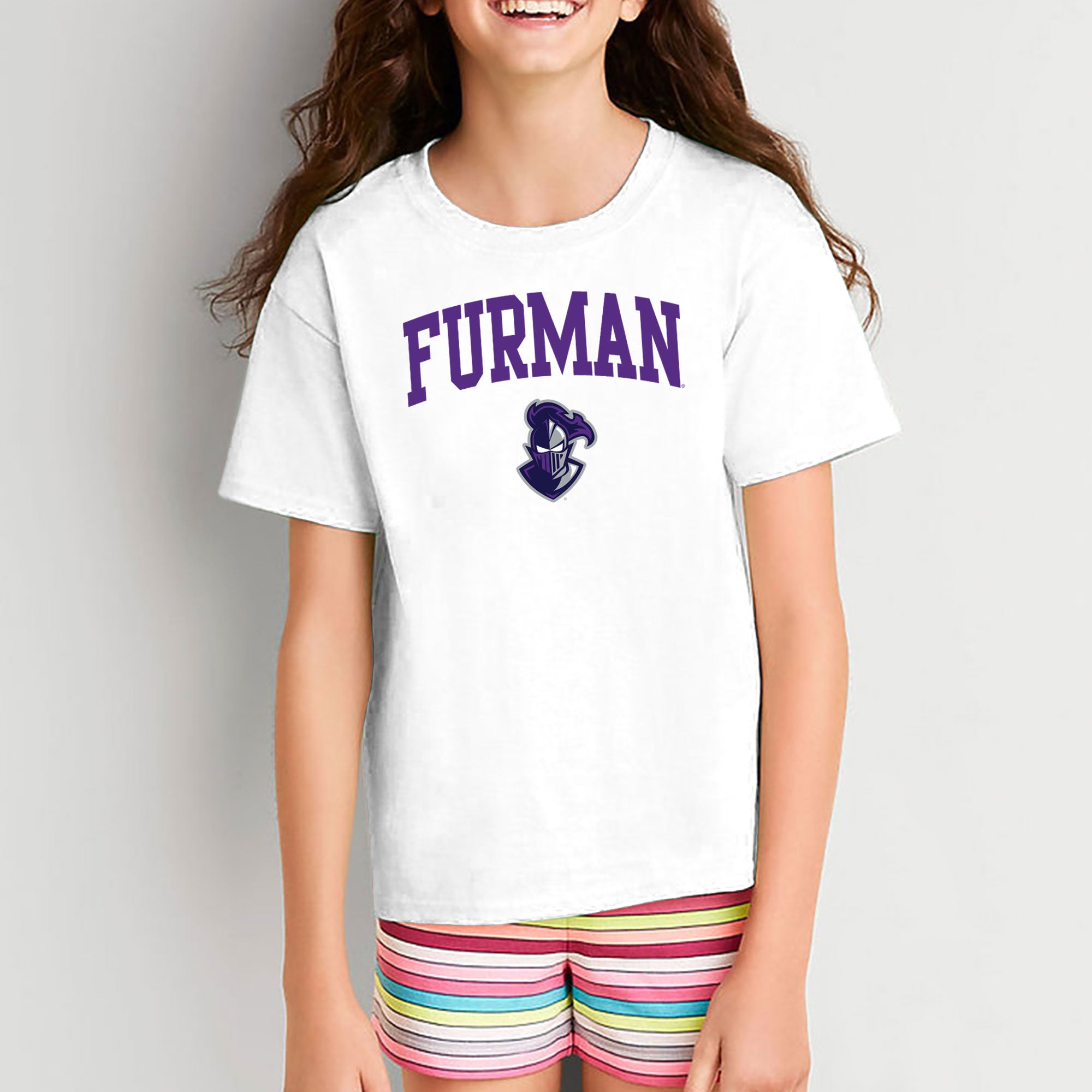 Furman University Paladins Arch Logo Short Sleeve Youth T Shirt - White