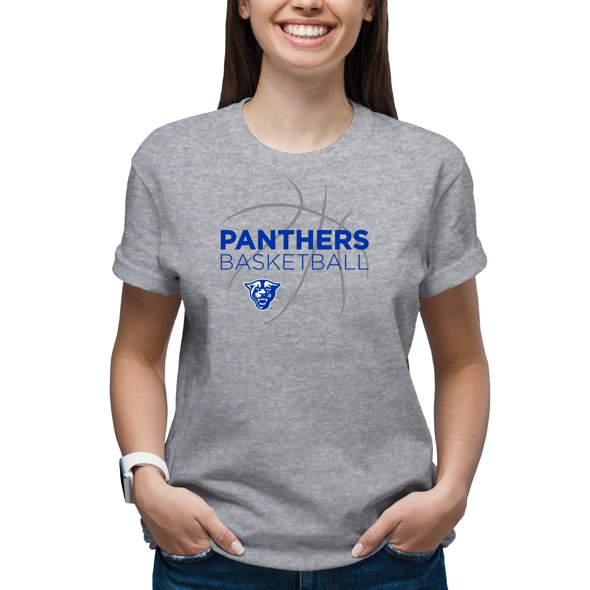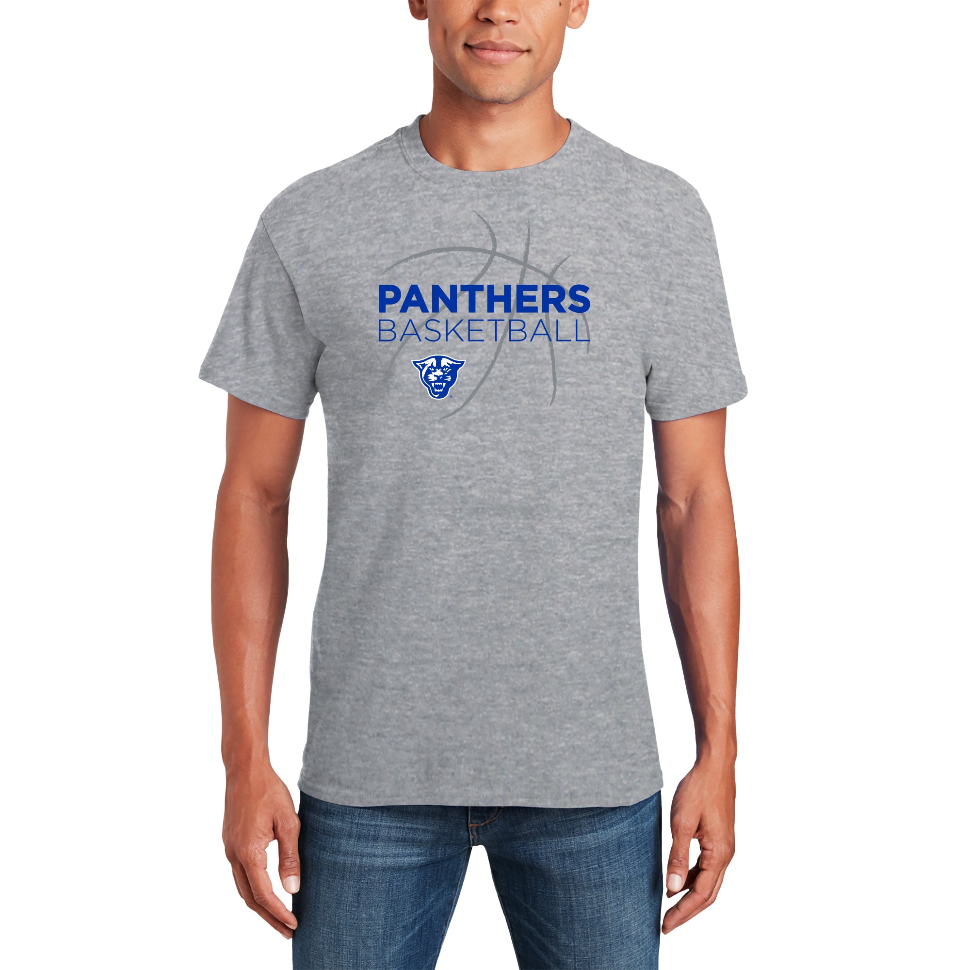 Georgia State University Panthers Basketball Sketch Basic Cotton Short Sleeve T Shirt - Sport Grey