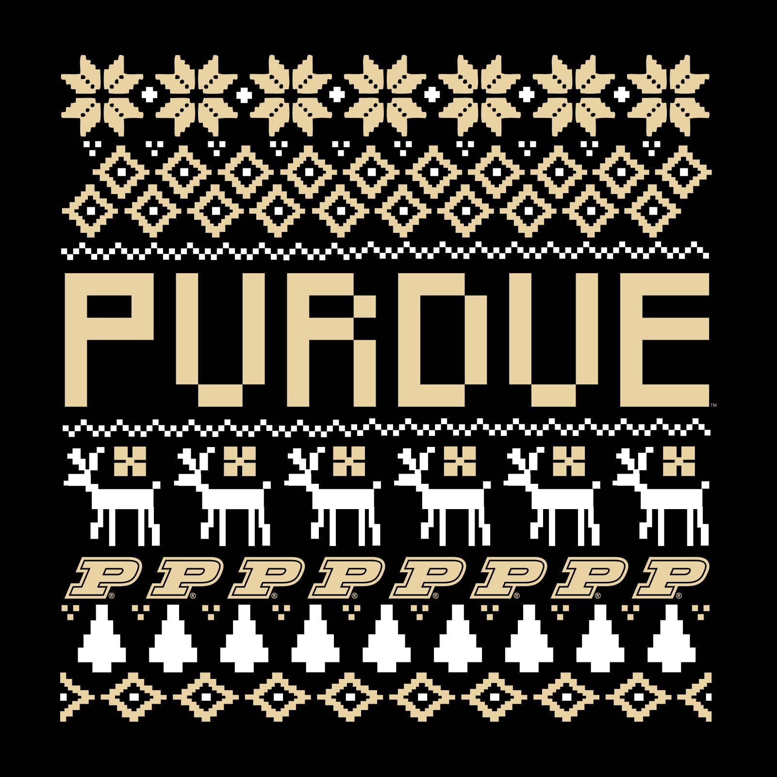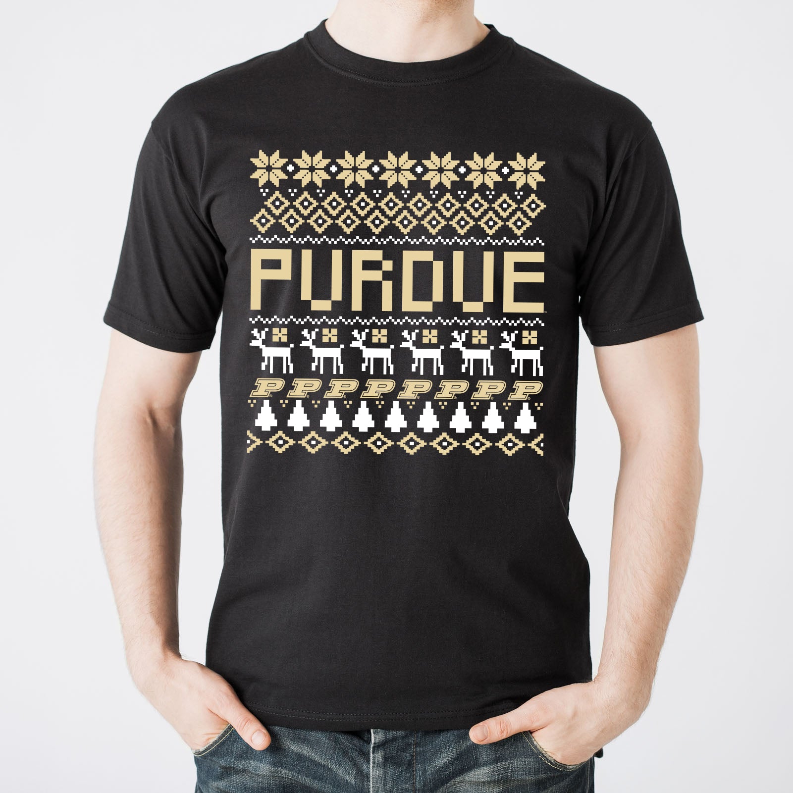 Purdue University Boilermakers Holiday Sweater Short Sleeve T-Shirt - Black
