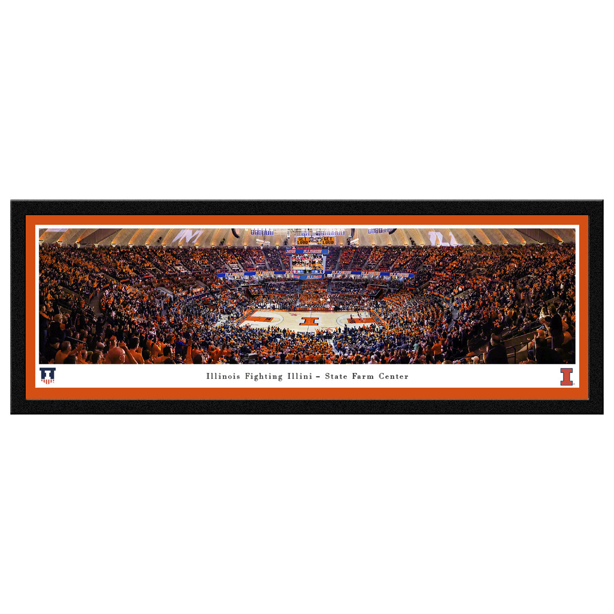This panoramic photo captures the action in front of a sold-out crowd at State Farm Center as the #10 ranked Fighting Illini hosted Big 10 rival, the Indiana Hoosiers. This century-old rivalry began in 1906 and has given fans many memorable games including this one, where fans saw the Illini surge ahead in the final minute to claim a 70-62 victory over the Hoosiers.