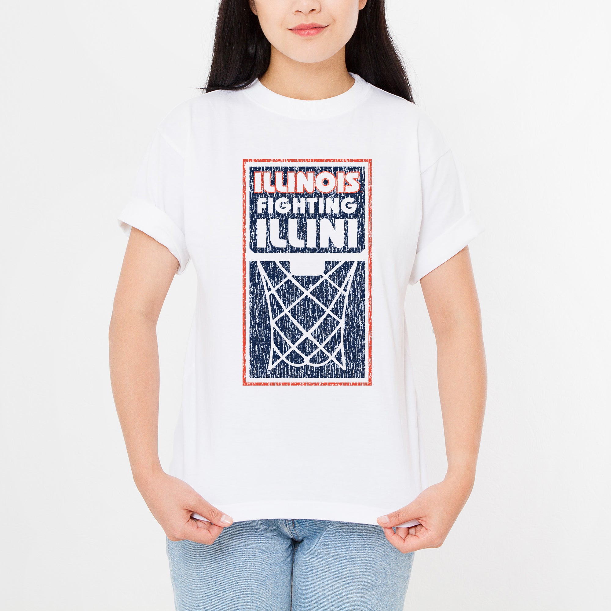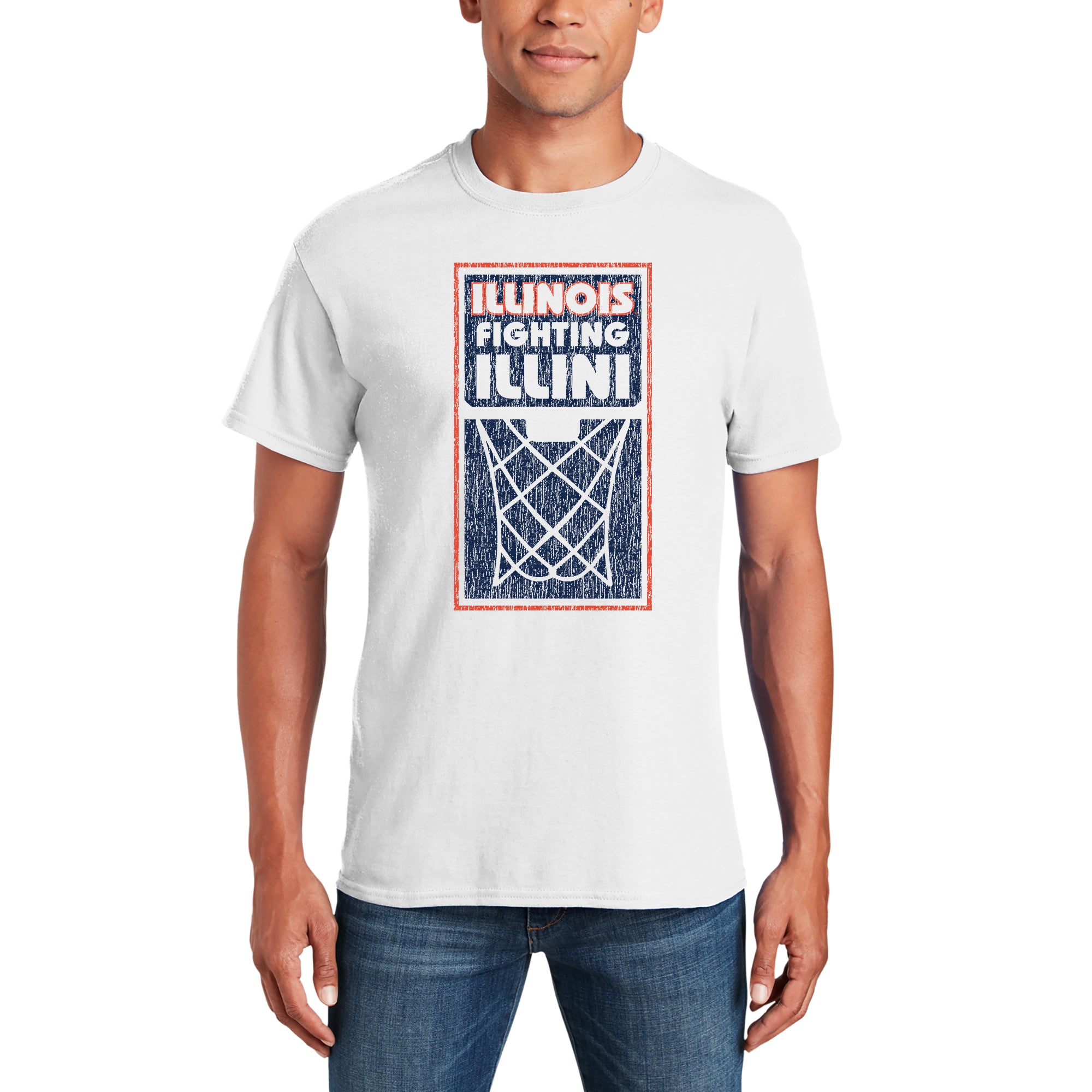Illinois Fighting Illini Basketball Net Block T Shirt - White