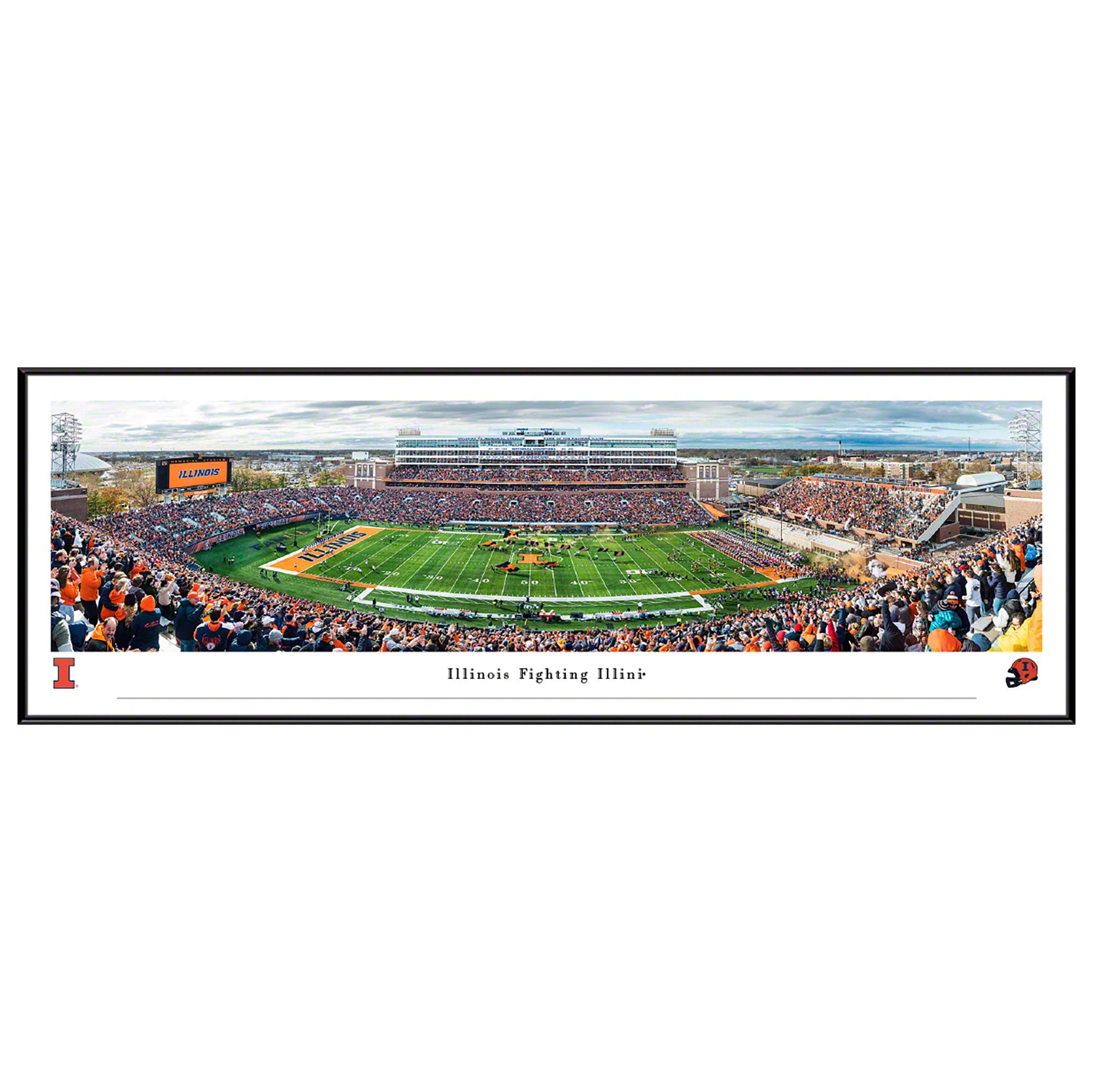 This panoramic photo captures the fan excitement at Memorial Stadium in Champaign, Illinois as the Fighting Illini football team took the field prior to their matchup with the Michigan State Spartans. Memorial Stadium was built in 1923 as a memorial to the Illinois men and women who gave their lives for their country during World War I. Renovations over the years have updated the stadium to today's standards and increased the capacity to 60,670 fans.