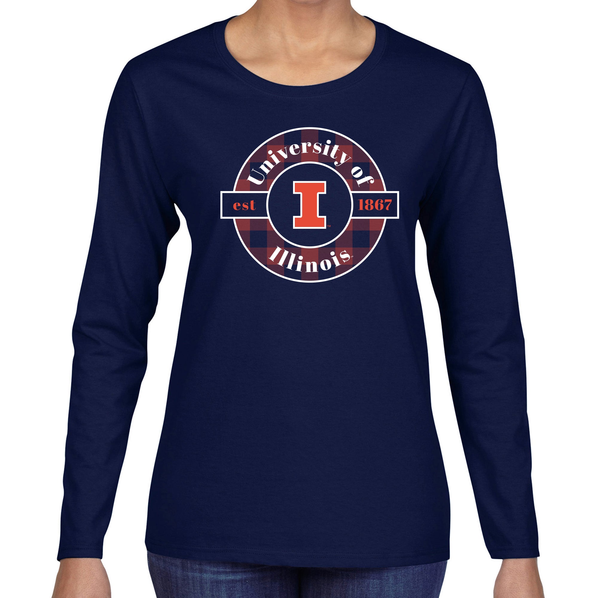 Illinois Plaid Circle Women's Long Sleeve - Navy