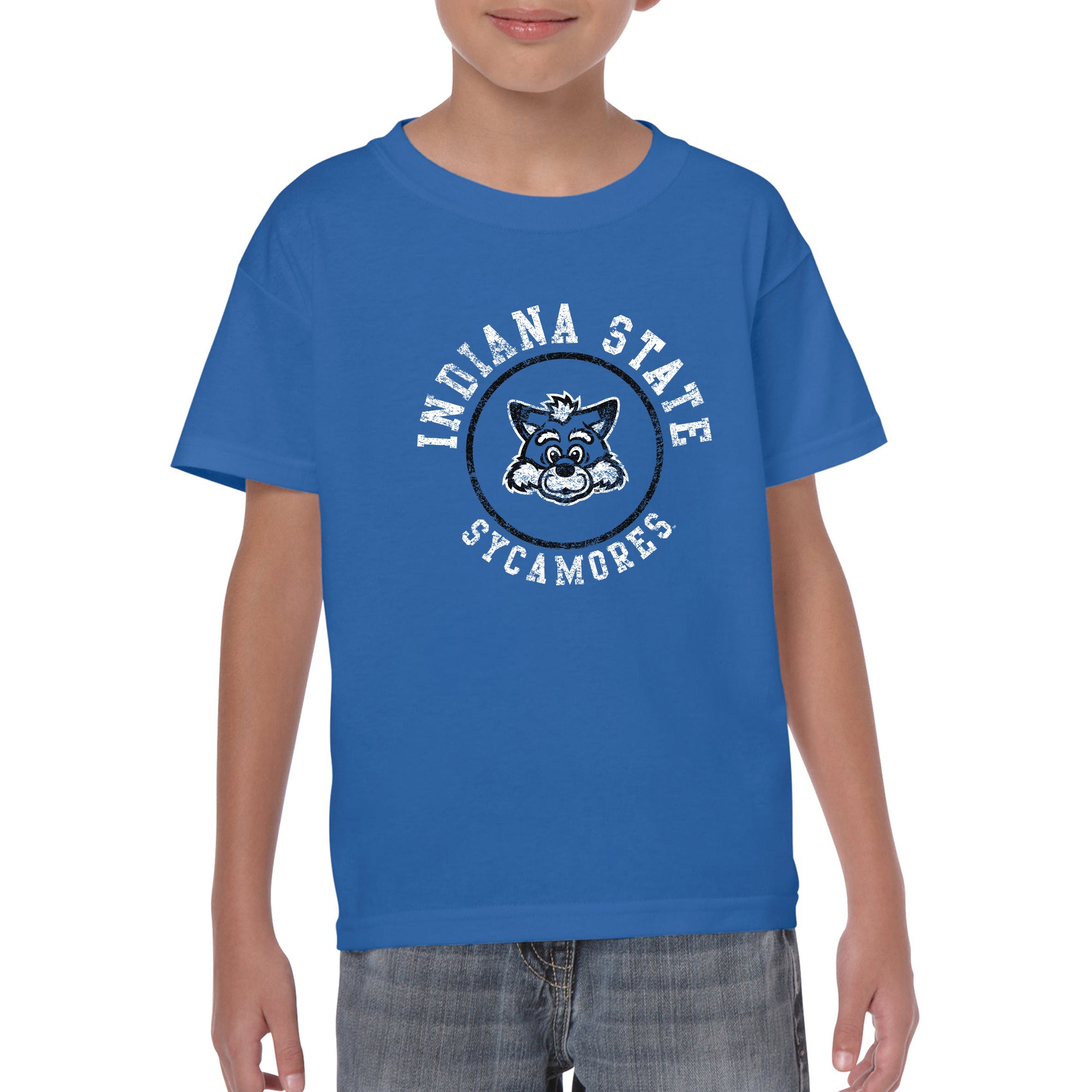 Indiana State University Sycamores Distressed Circle Logo Youth T Shirt - Royal