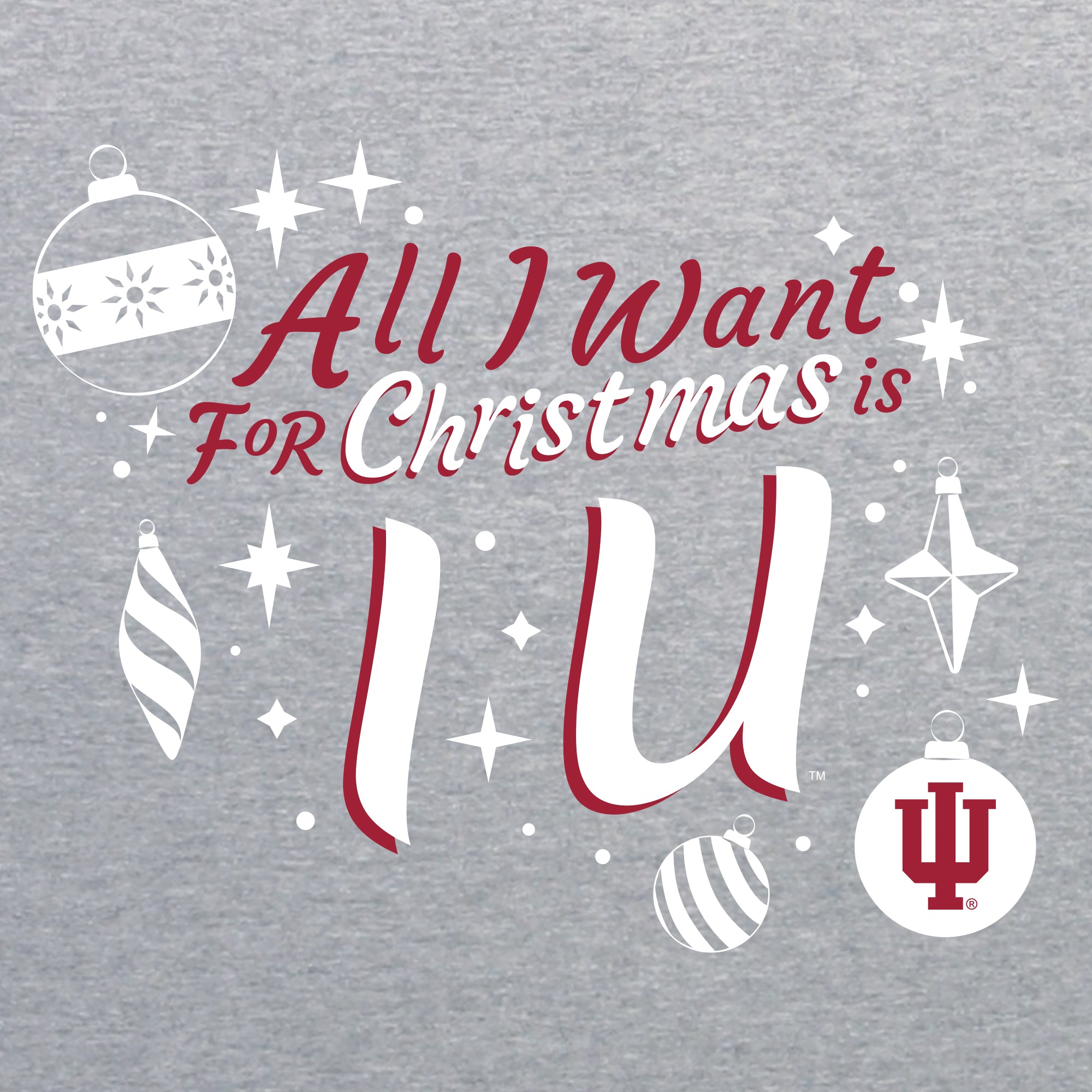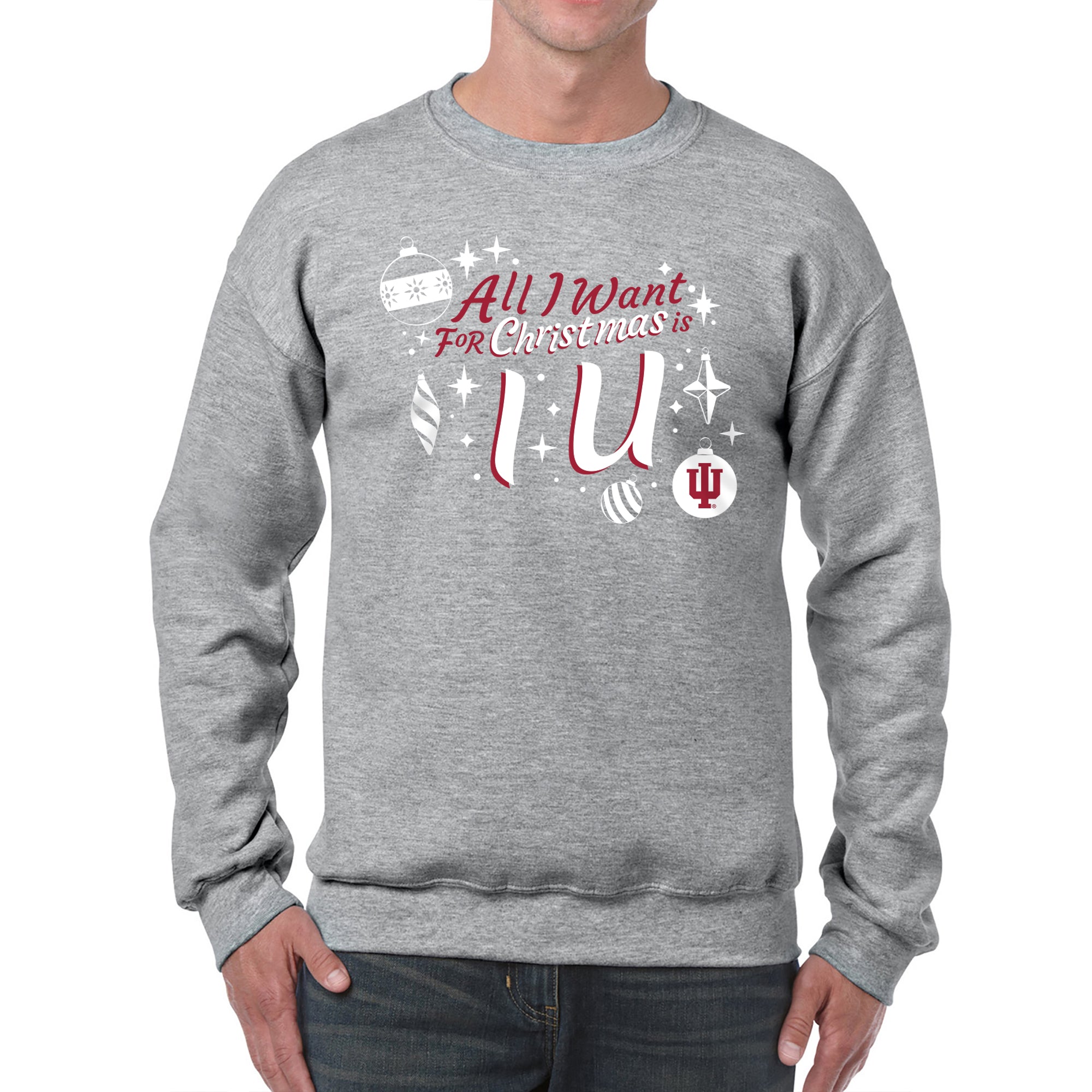 Indiana Hoosiers All I Want For Christmas Is IU Crewneck Sweatshirt - Sport Grey