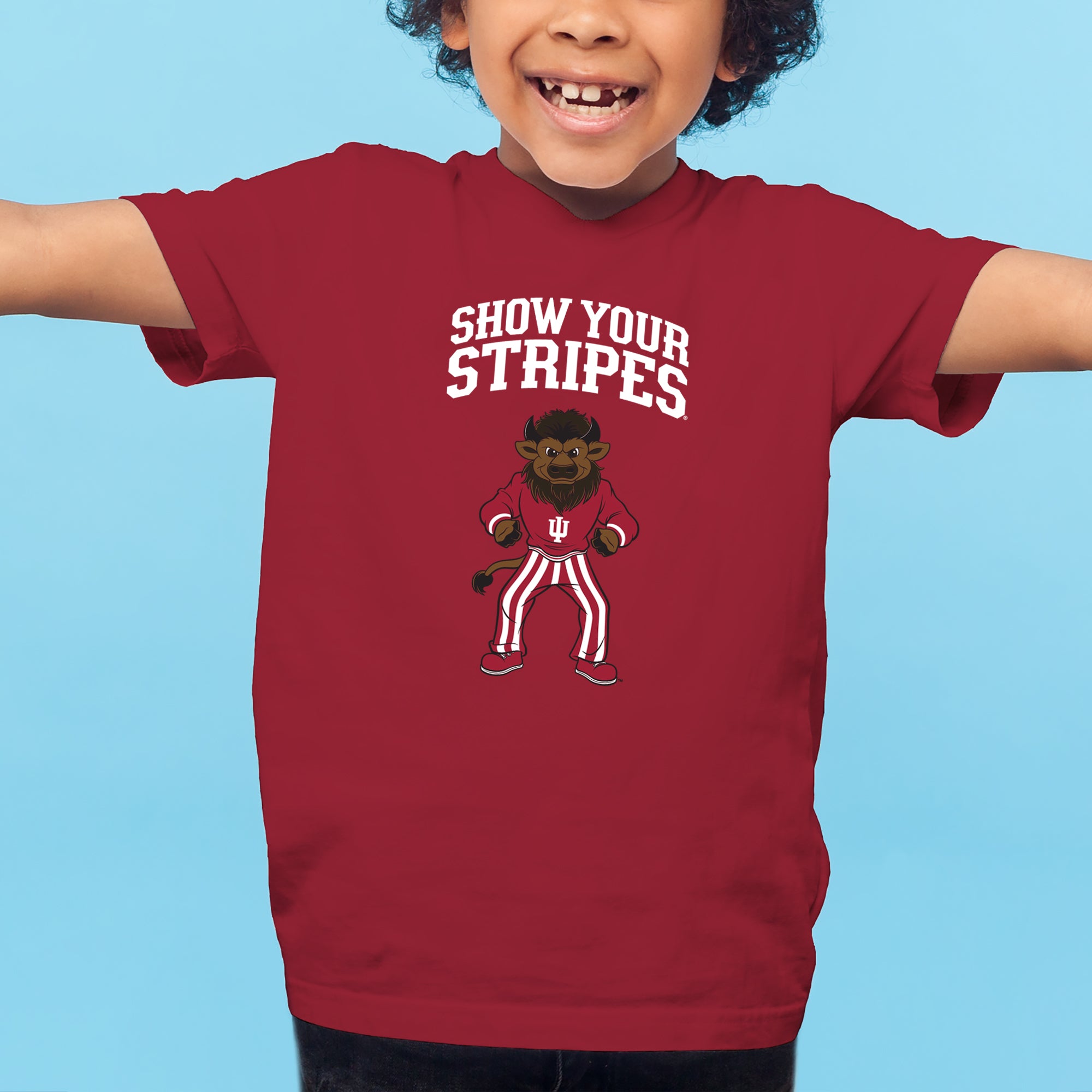 Indiana Show Your Stripes Mascot Spirit Mark Youth T-Shirt - Cardinal