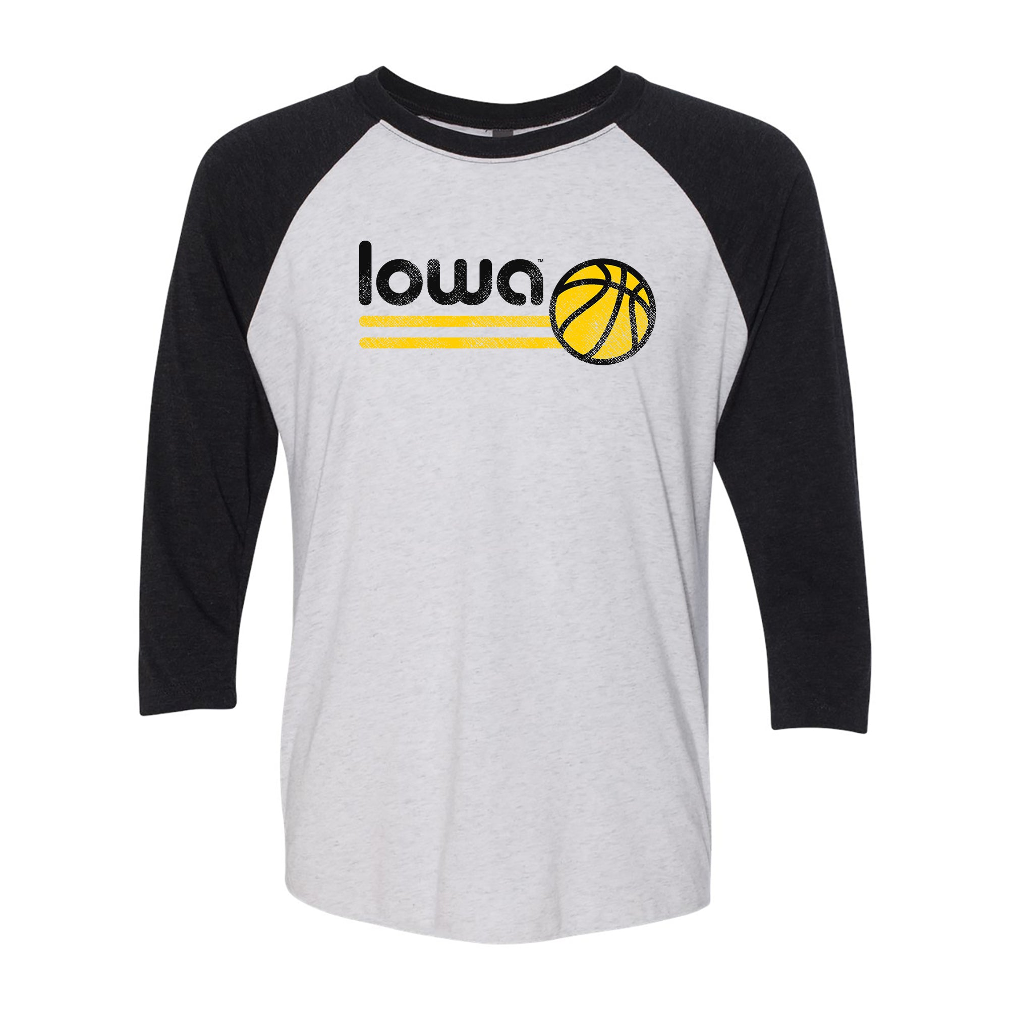 University of Iowa Hawkeyes Basketball Bubble Raglan T Shirt - Heather White/Black