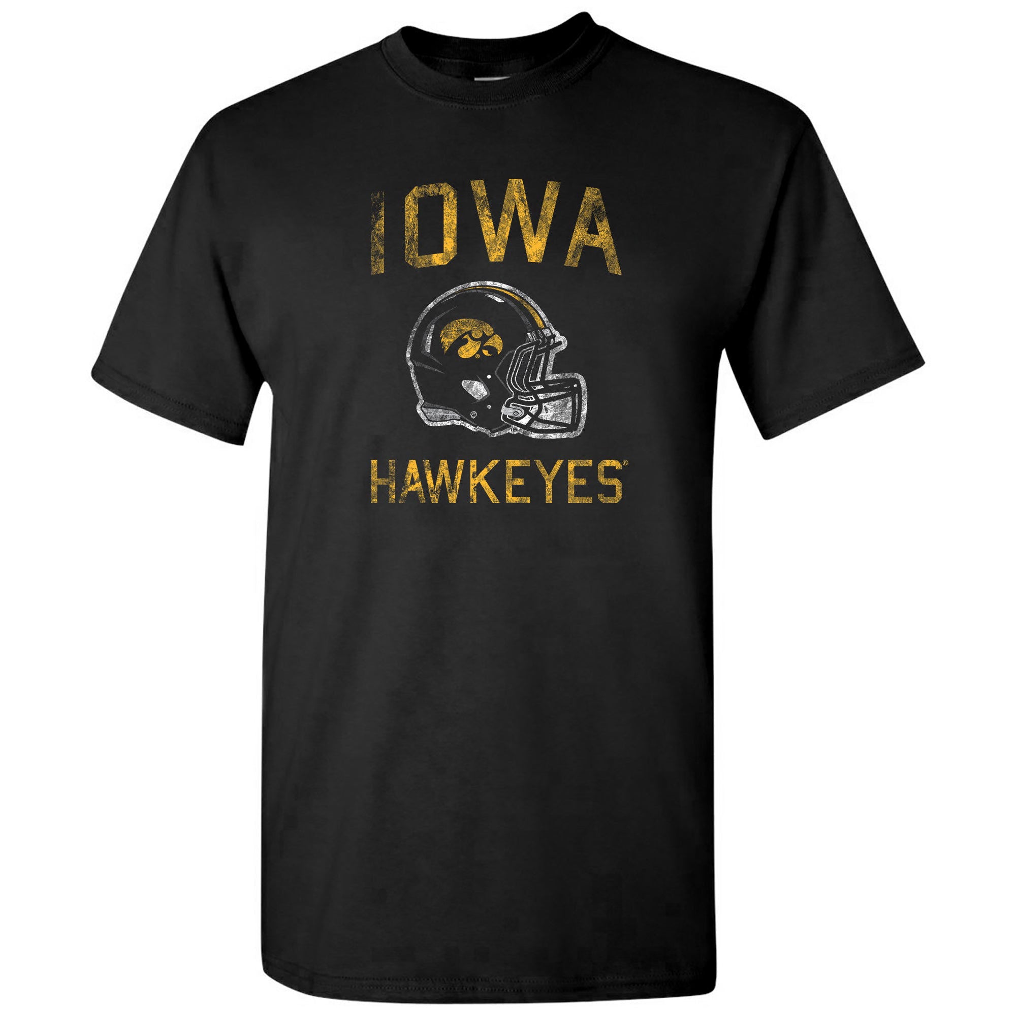 University of Iowa Hawkeyes Faded Football Helmet Basic Cotton Short Sleeve T Shirt - Black