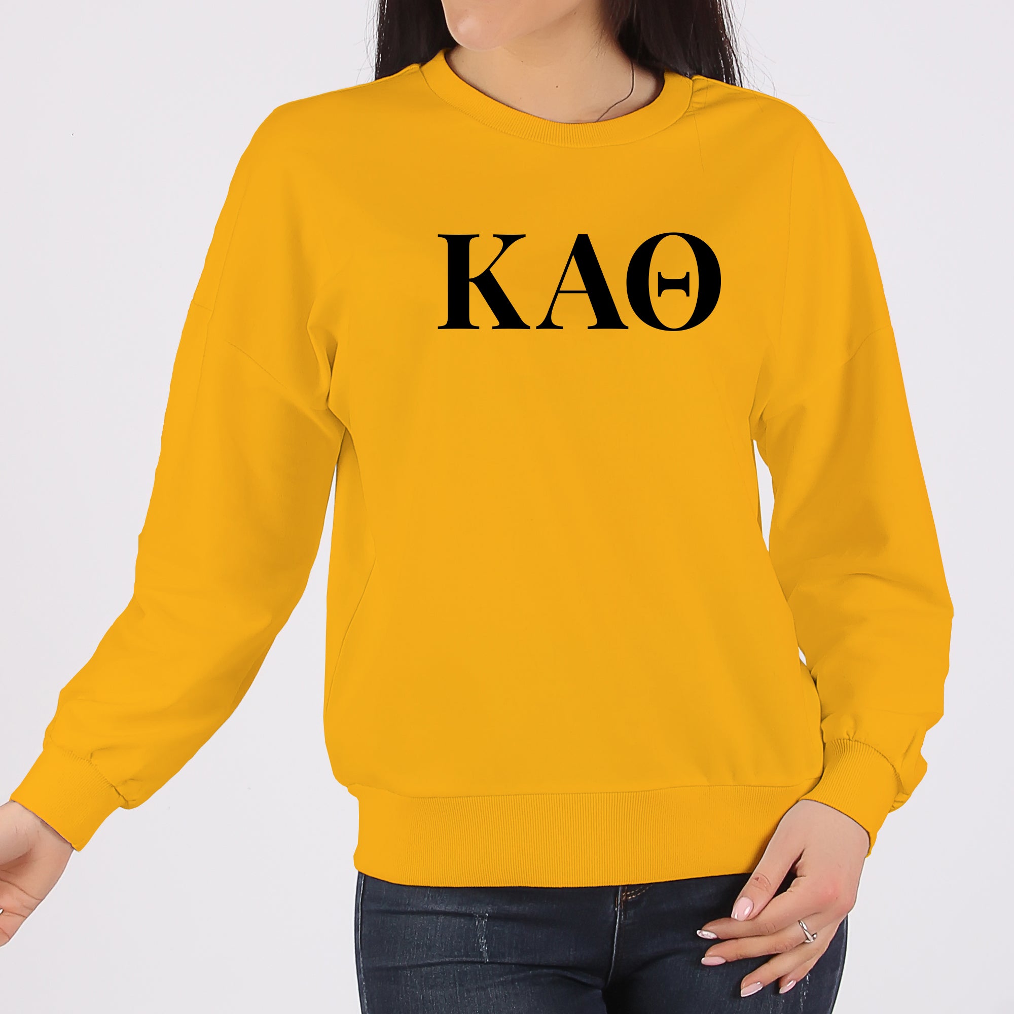 Kappa Alpha Theta Greek Letter Block Crewneck Sweatshirt - Gold