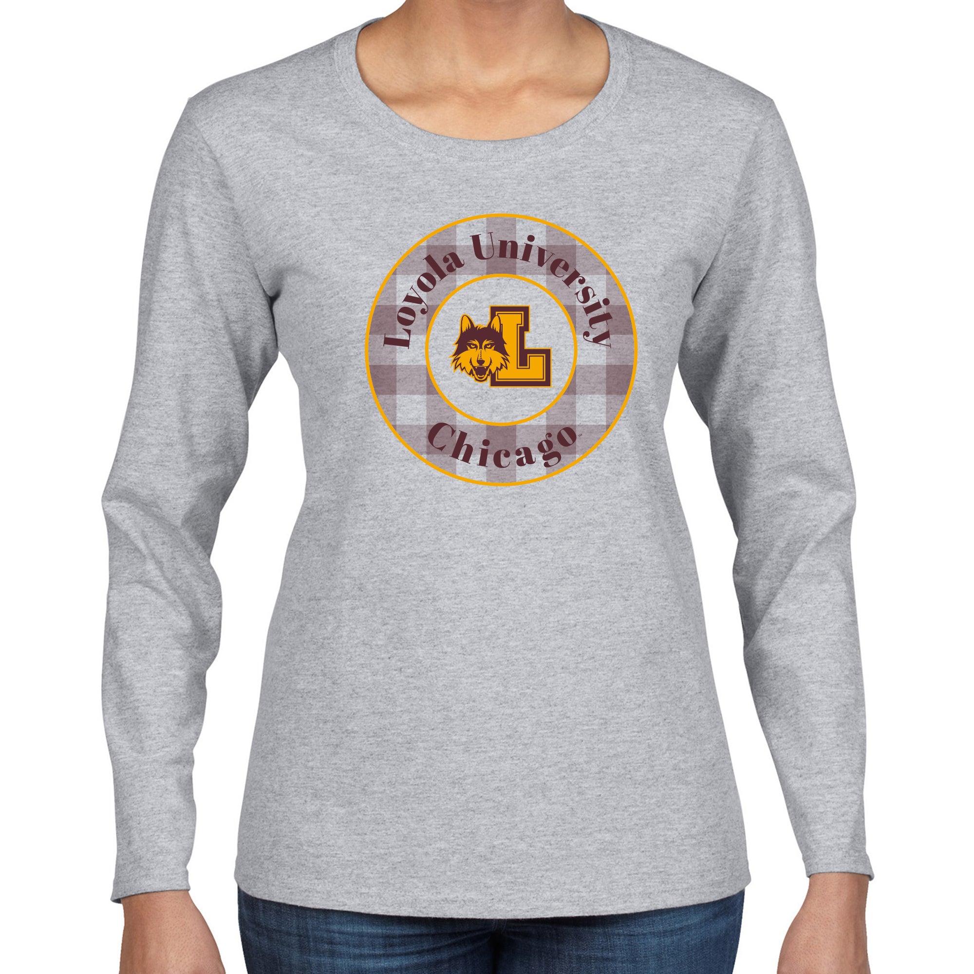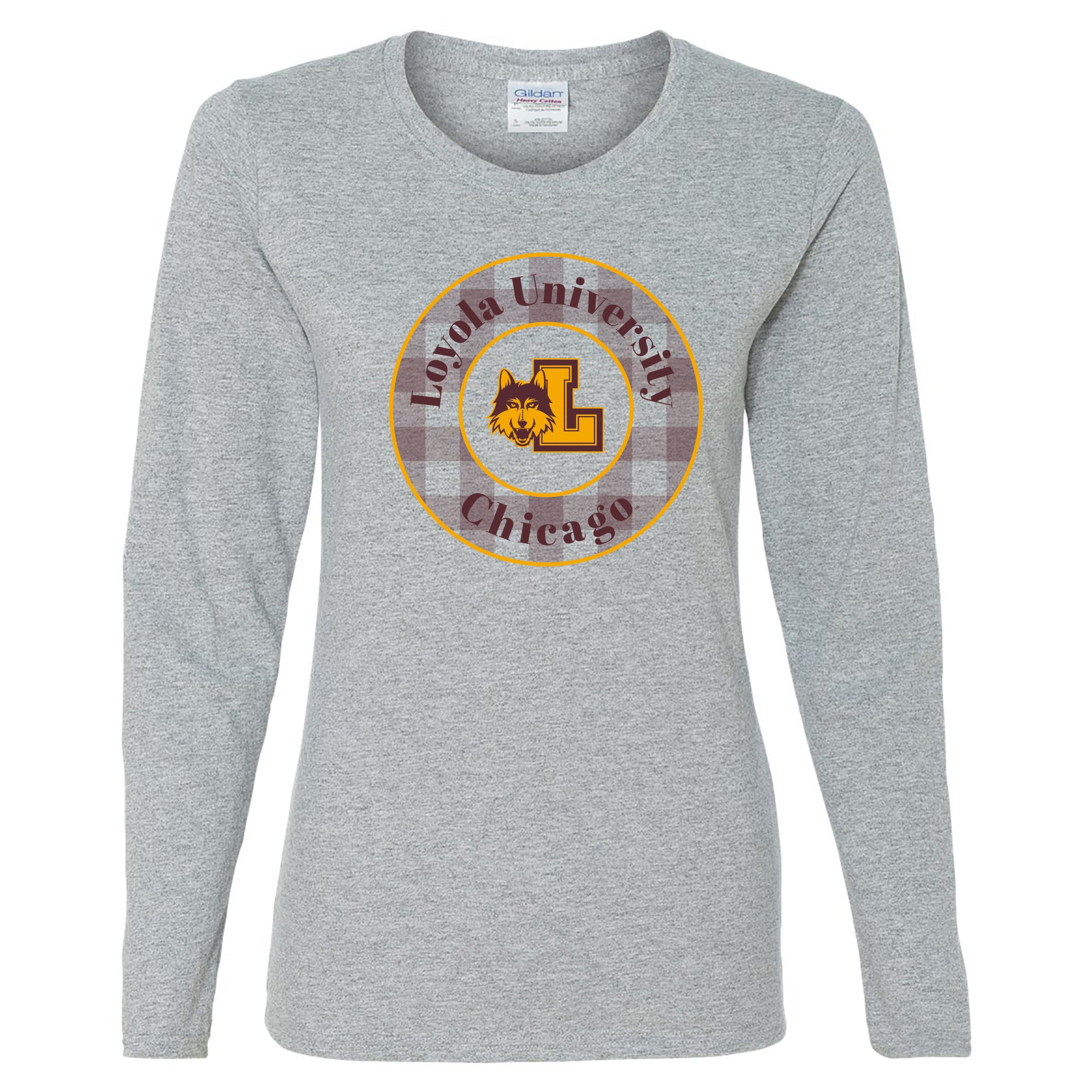 Loyola Chicago Plaid Circle Women's Long Sleeve - Sport Grey