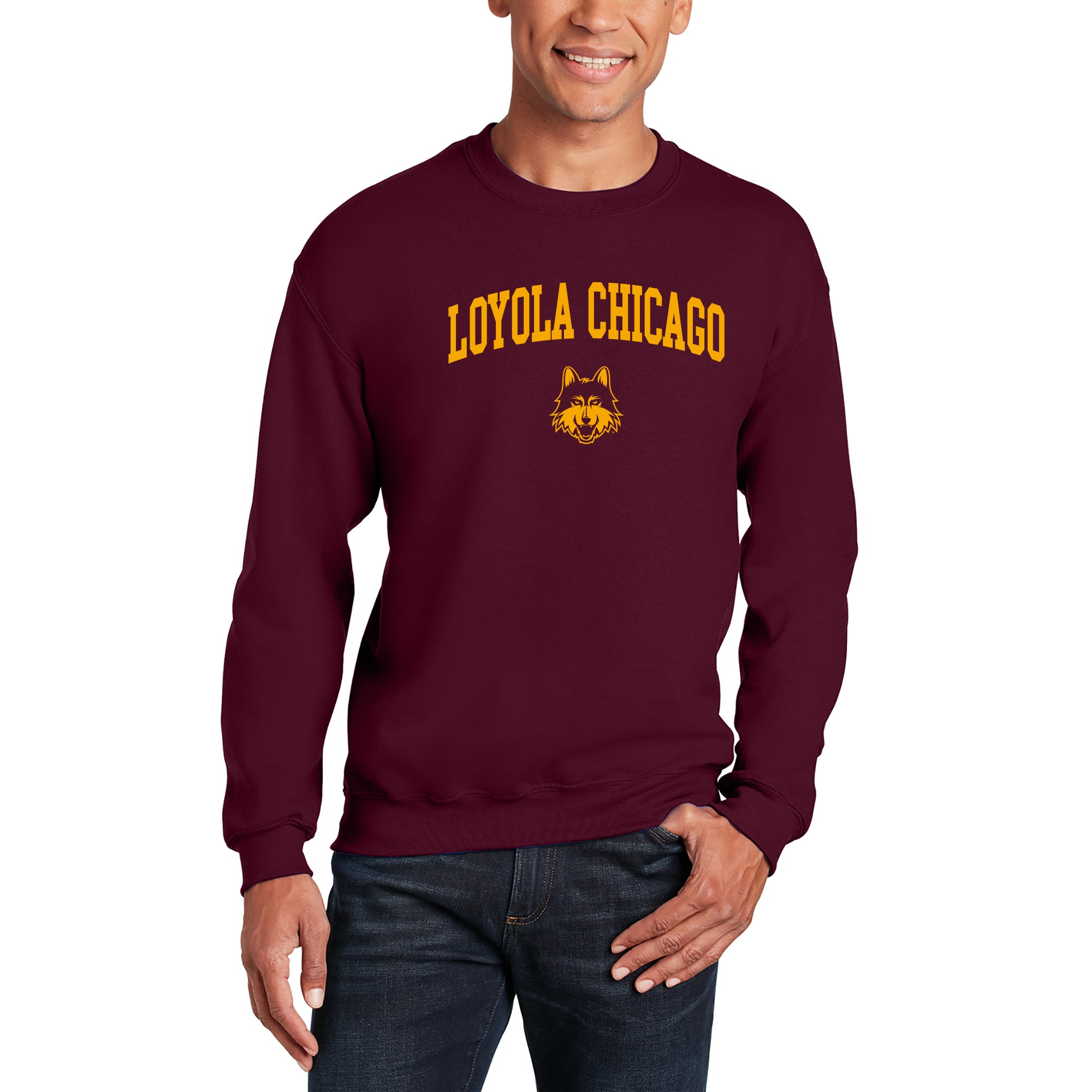 Loyola Chicago Ramblers Arch Logo Crewneck Sweatshirt - Maroon