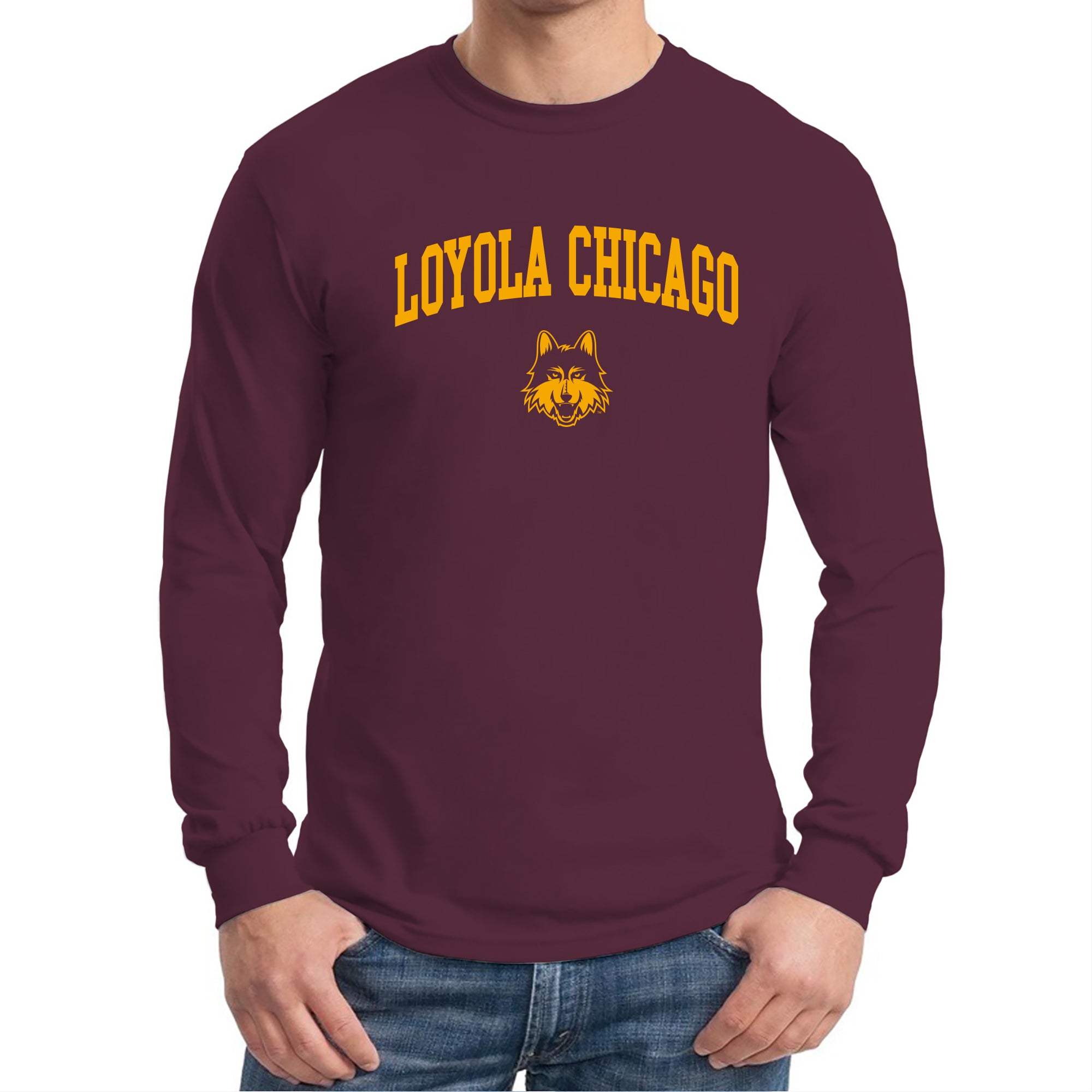 Loyola University Chicago Ramblers Arch Logo Long Sleeve T Shirt - Maroon