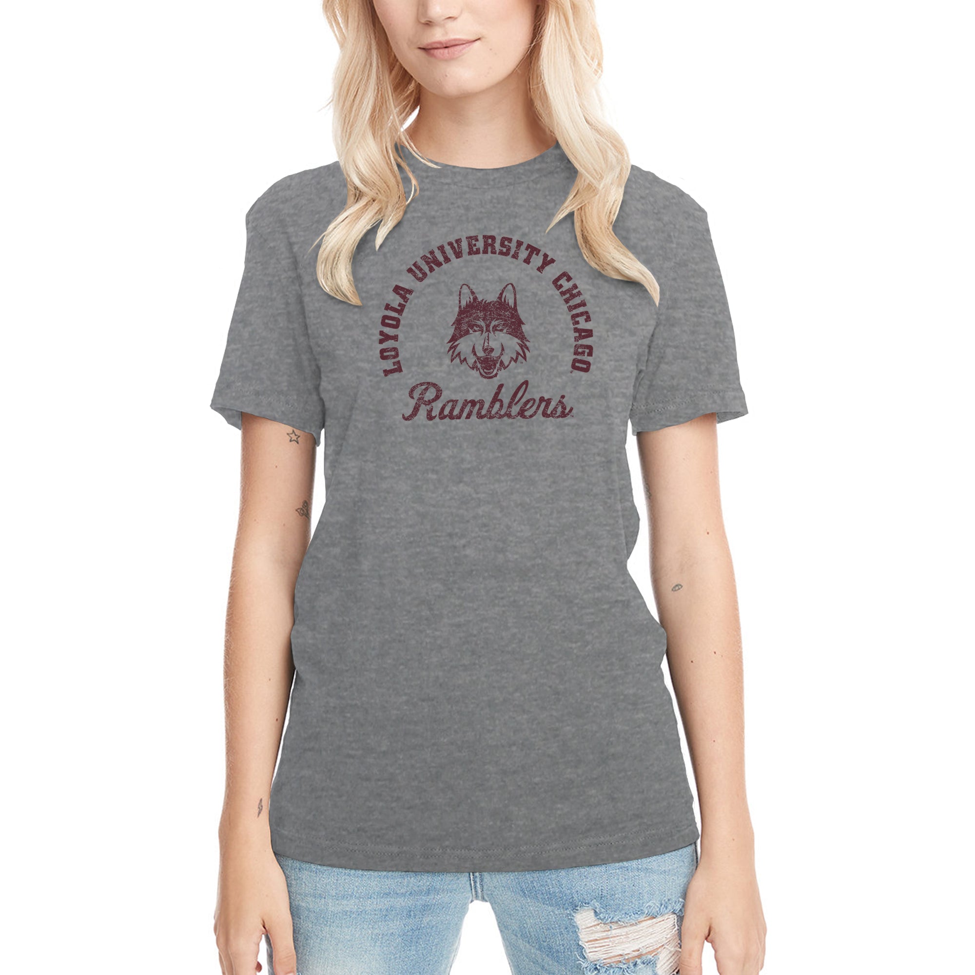 Loyola University Chicago Ramblers Retro Script Short Sleeve T Shirt - Premium Heather