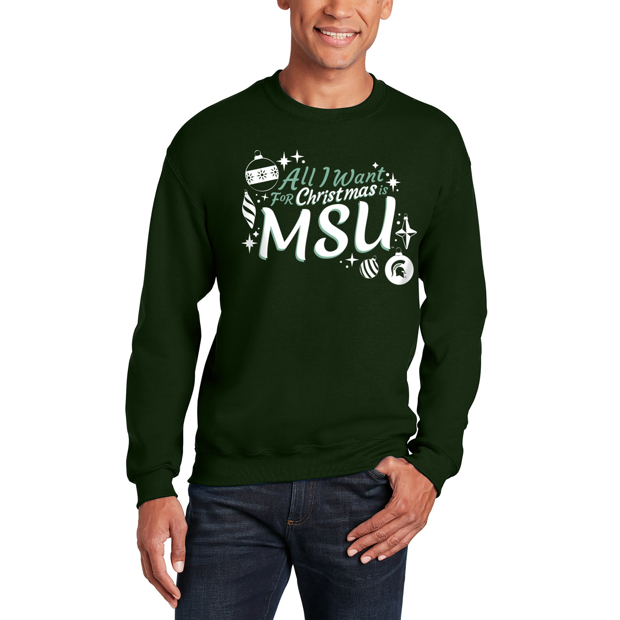 Michigan State Spartans All I Want For Christmas Is MSU Crewneck Sweatshirt - Forest