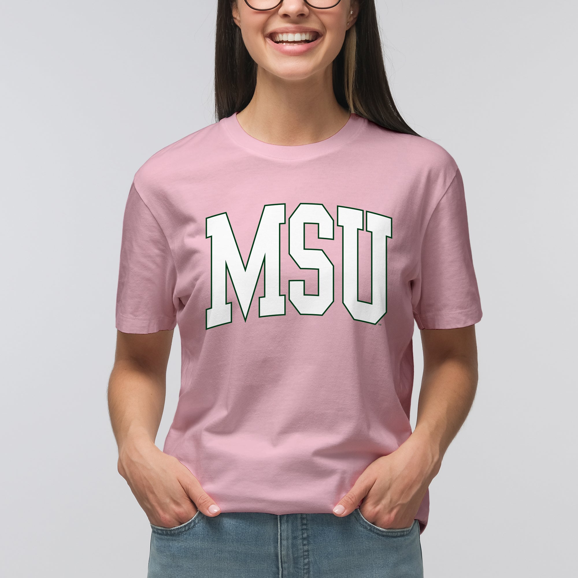 Michigan State University Spartans Mega Arch T-Shirt - Light Pink