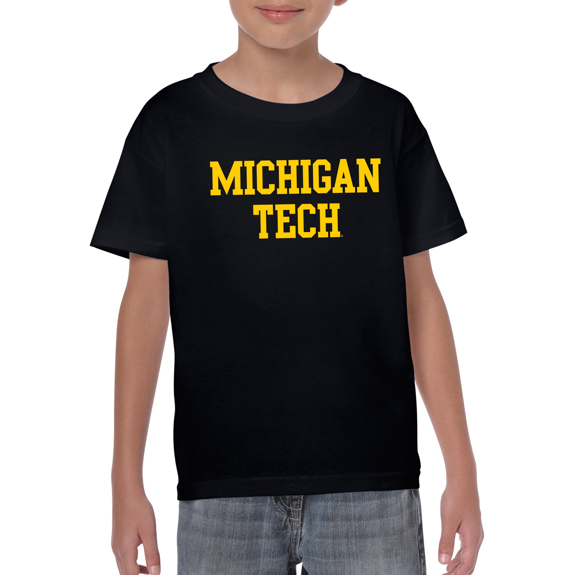 Michigan Technological University Huskies Basic Block Cotton Youth T-Shirt - Black