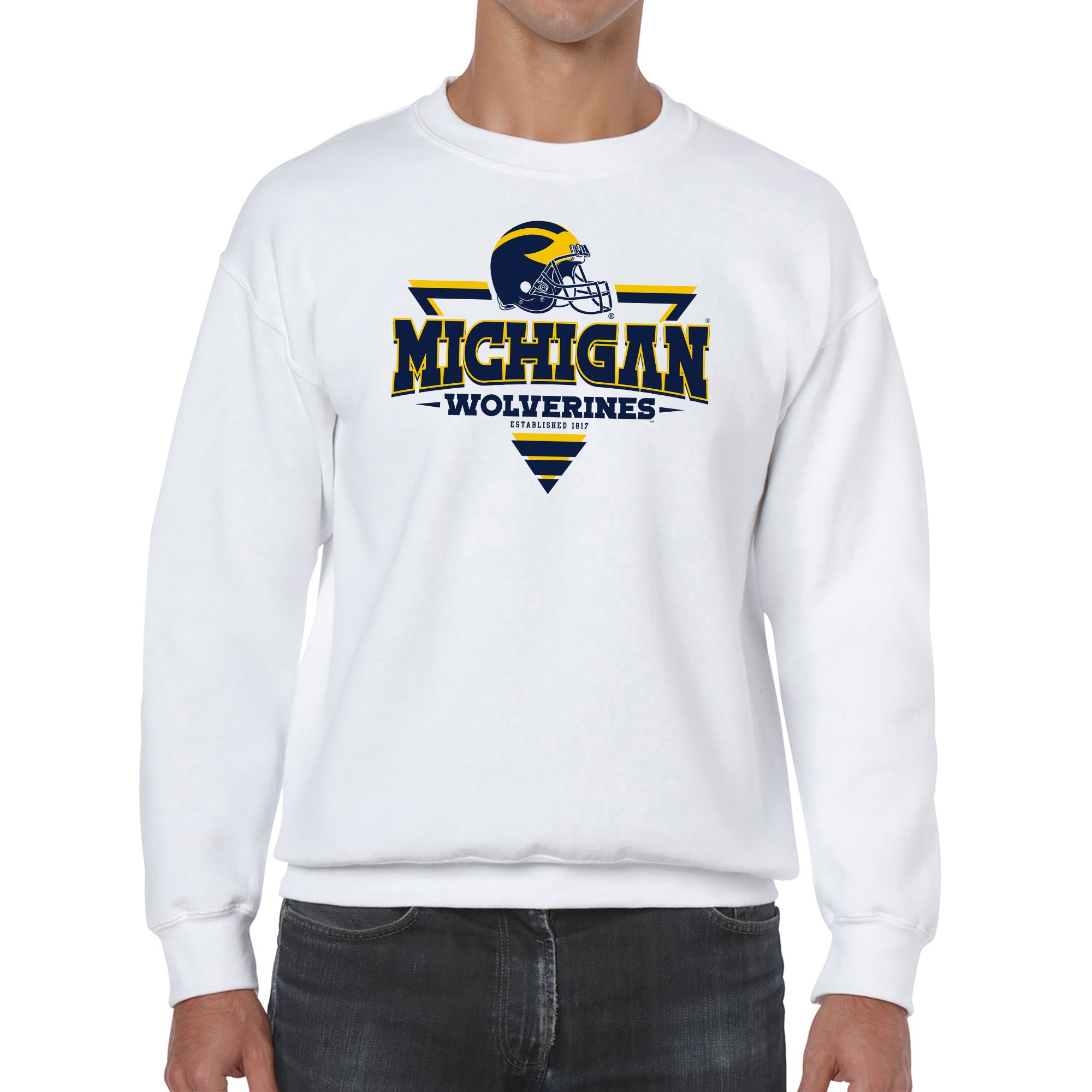 Michigan Wolverines Football Triangle Crewneck Sweatshirt - White