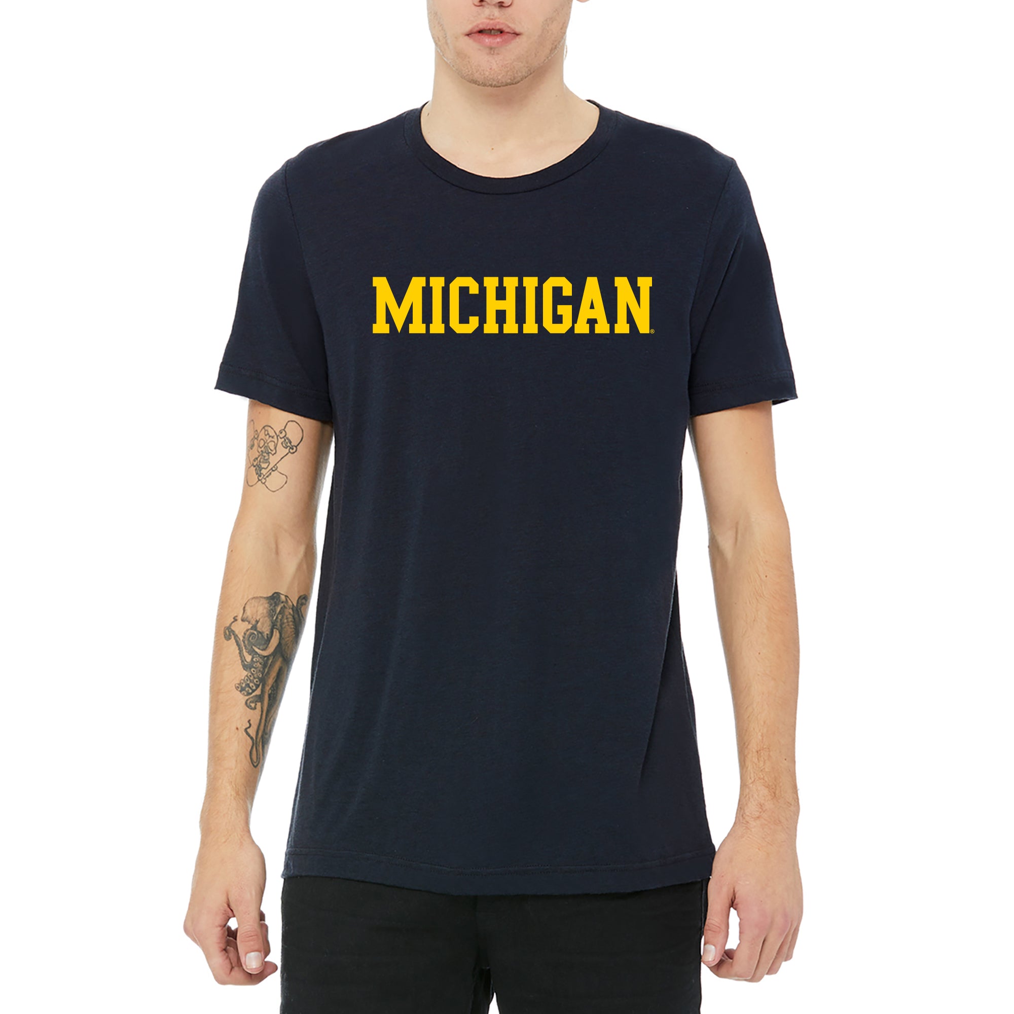 Michigan Basic Block Canvas Triblend T-Shirt - Solid Navy Triblend