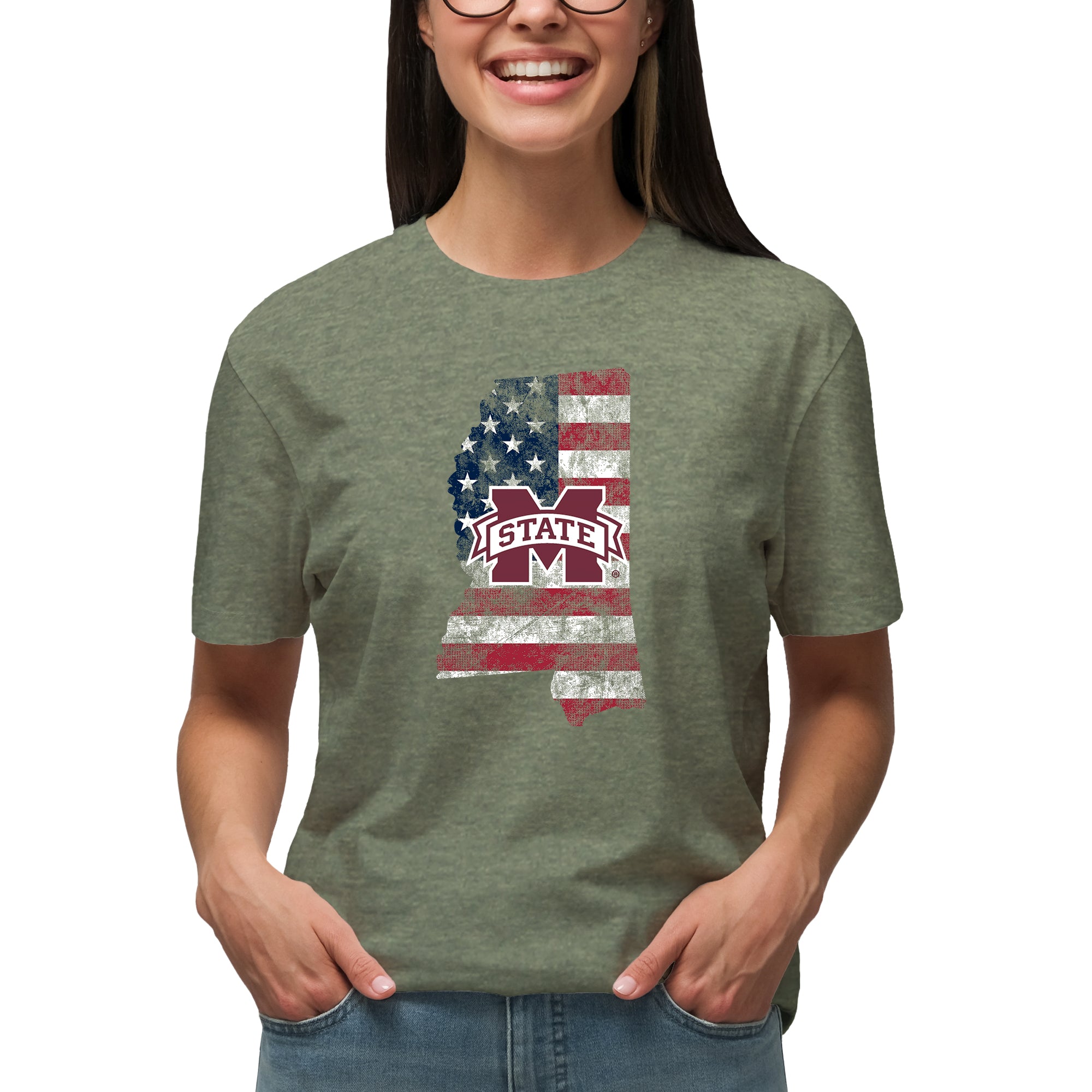 Mississippi State Patriotic State Silhouette T-Shirt - Heather Military