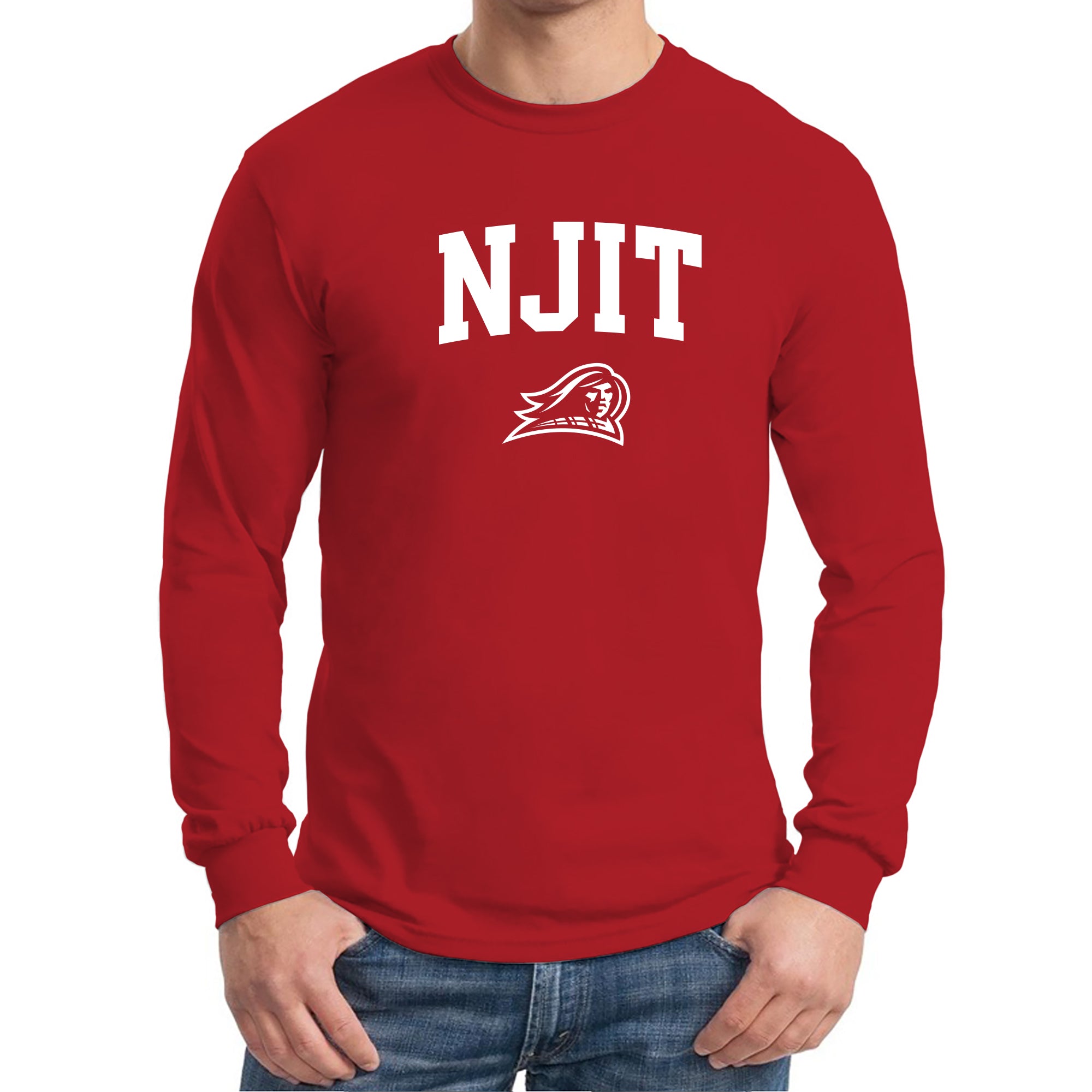 New Jersey Institute of Technology Arch Logo Long Sleeve T Shirt - Red