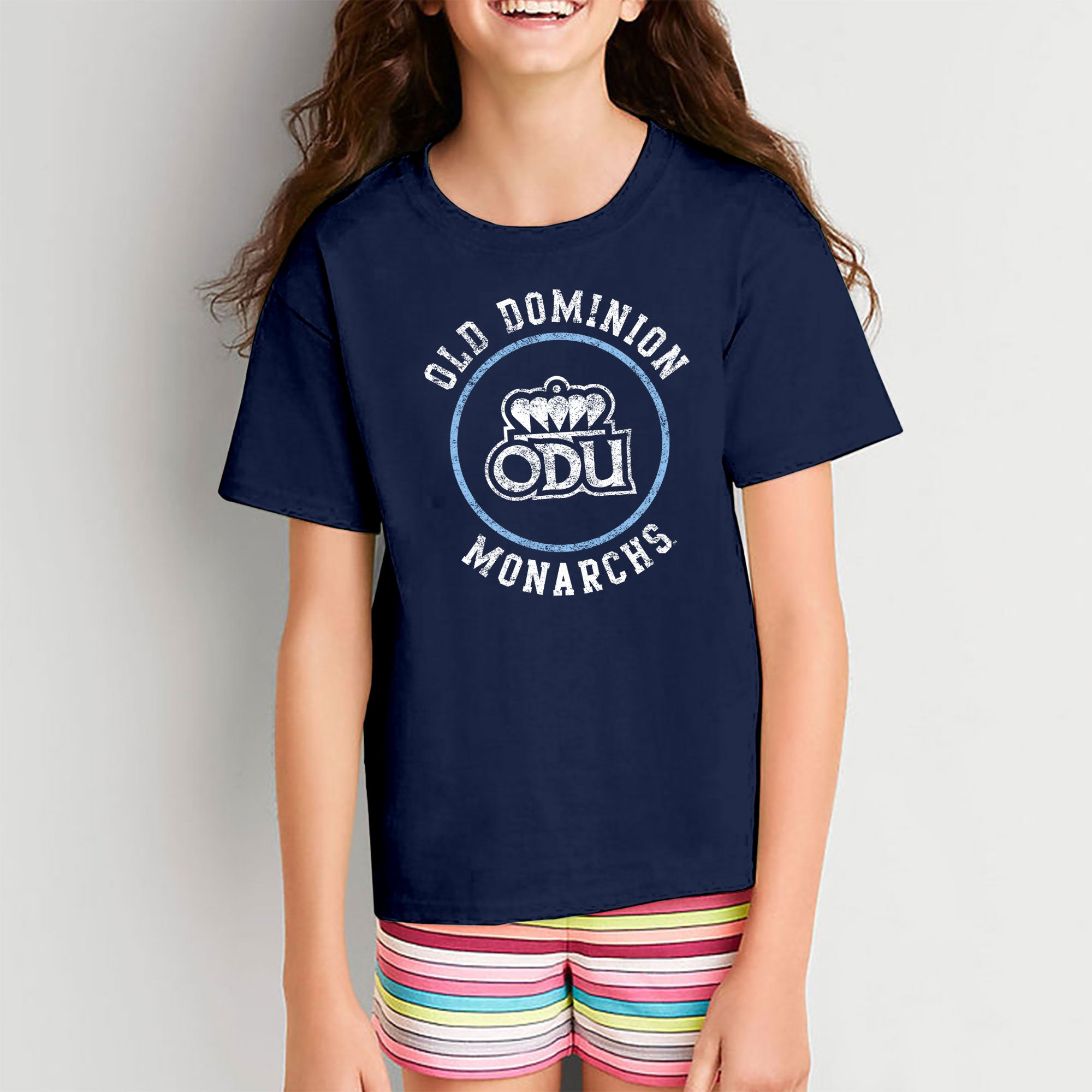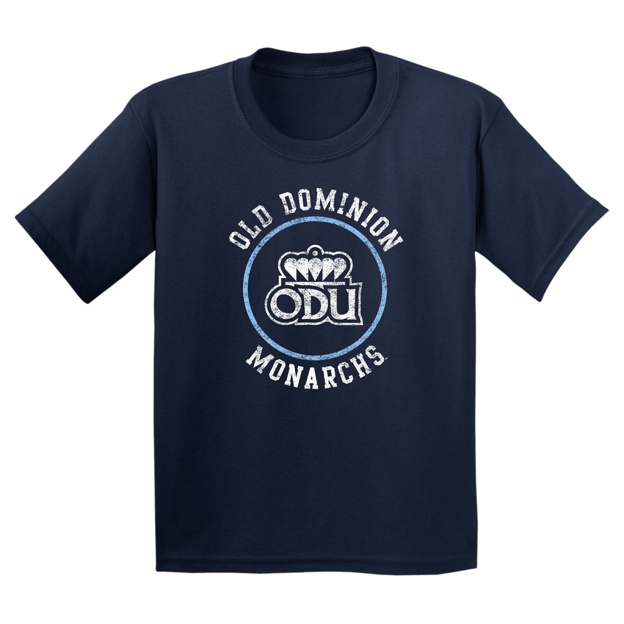 Old Dominion University Monarchs Distressed Circle Logo Heavy Cotton Youth T Shirt - Navy