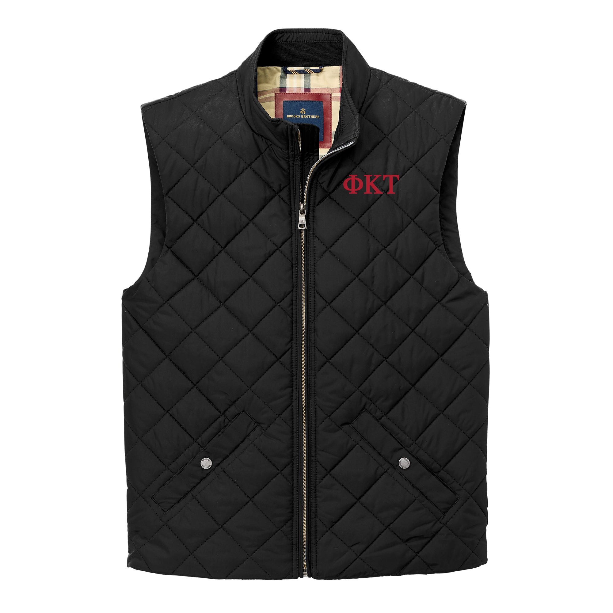Phi Kappa Tau Greek Letter Block LC Brooks Brothers Quilted Vest - Deep Black