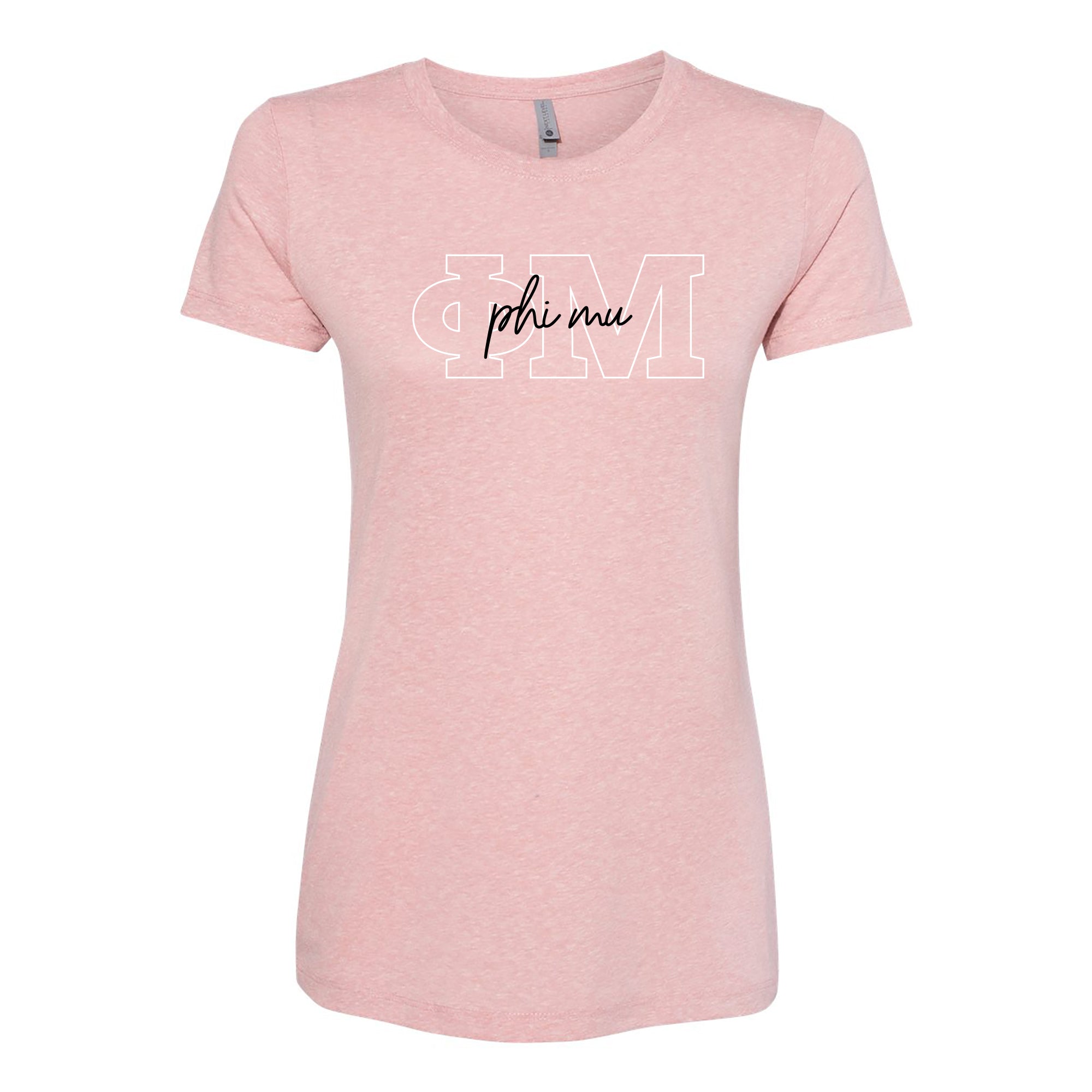 Phi Mu Greek Outline Overlay Womens Triblend T-Shirt - Desert Pink
