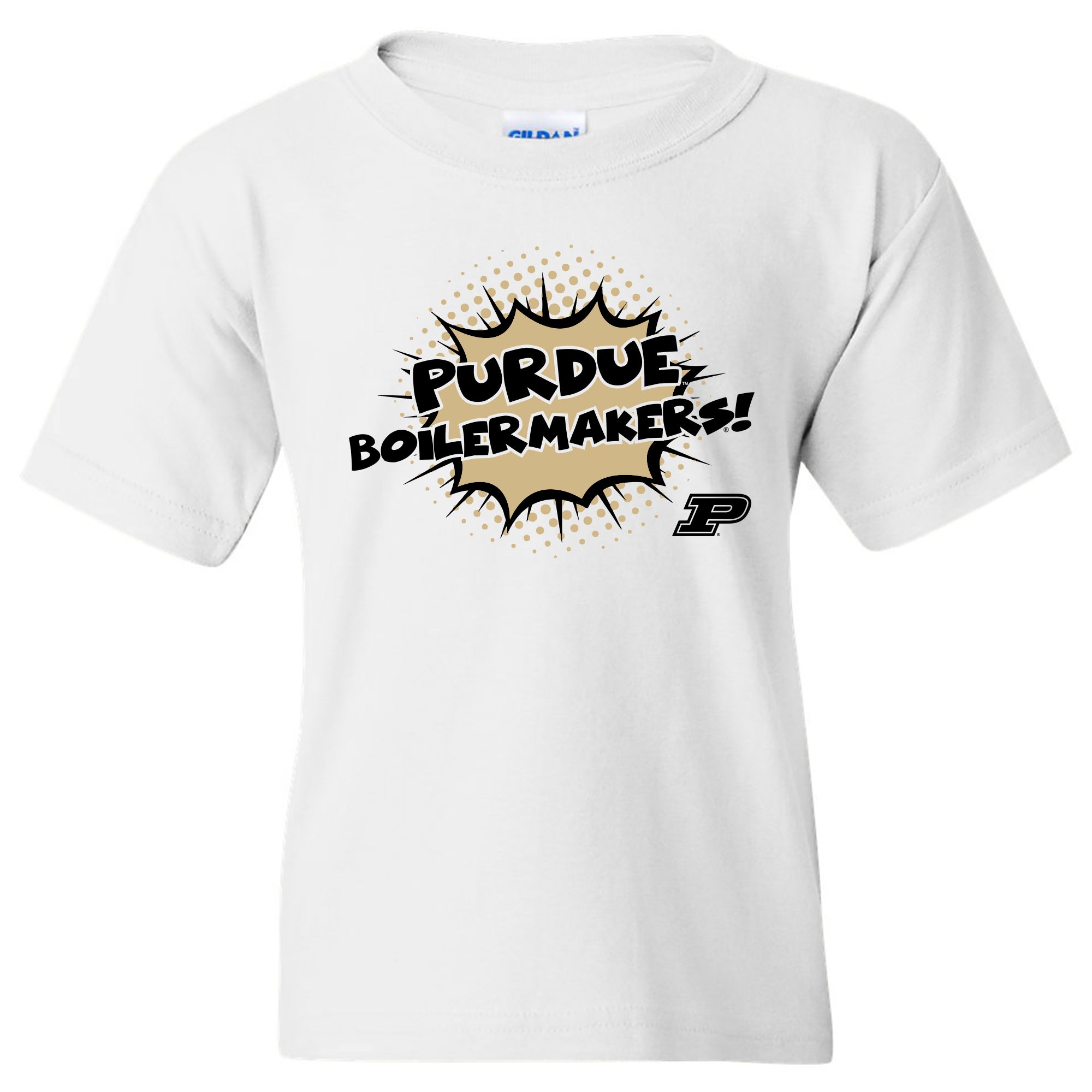 Purdue University Boilermakers Comic Blast Youth Basic Cotton Short Sleeve Tee - White