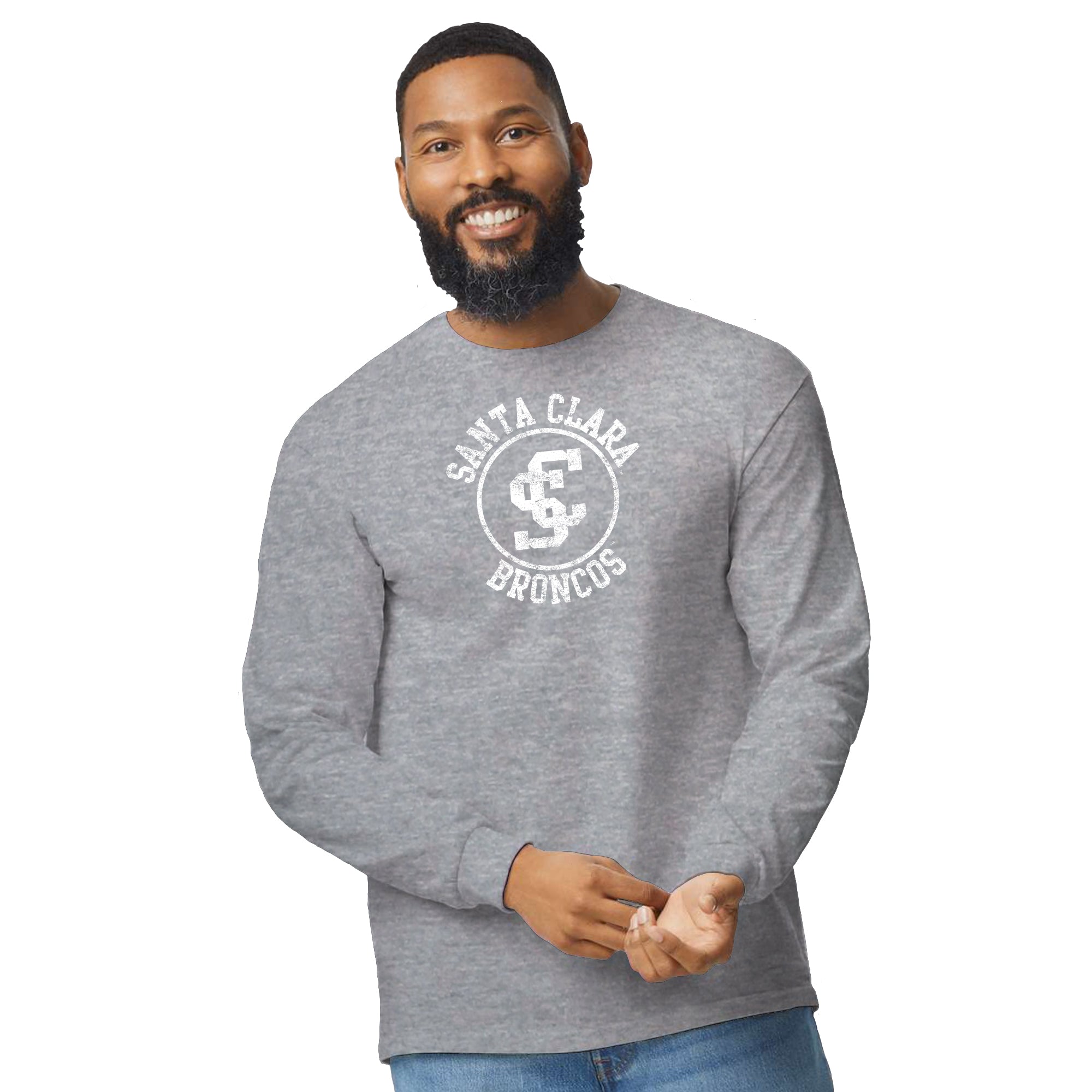 Santa Clara Broncos Distressed Circle Logo Long Sleeve - Sport Grey