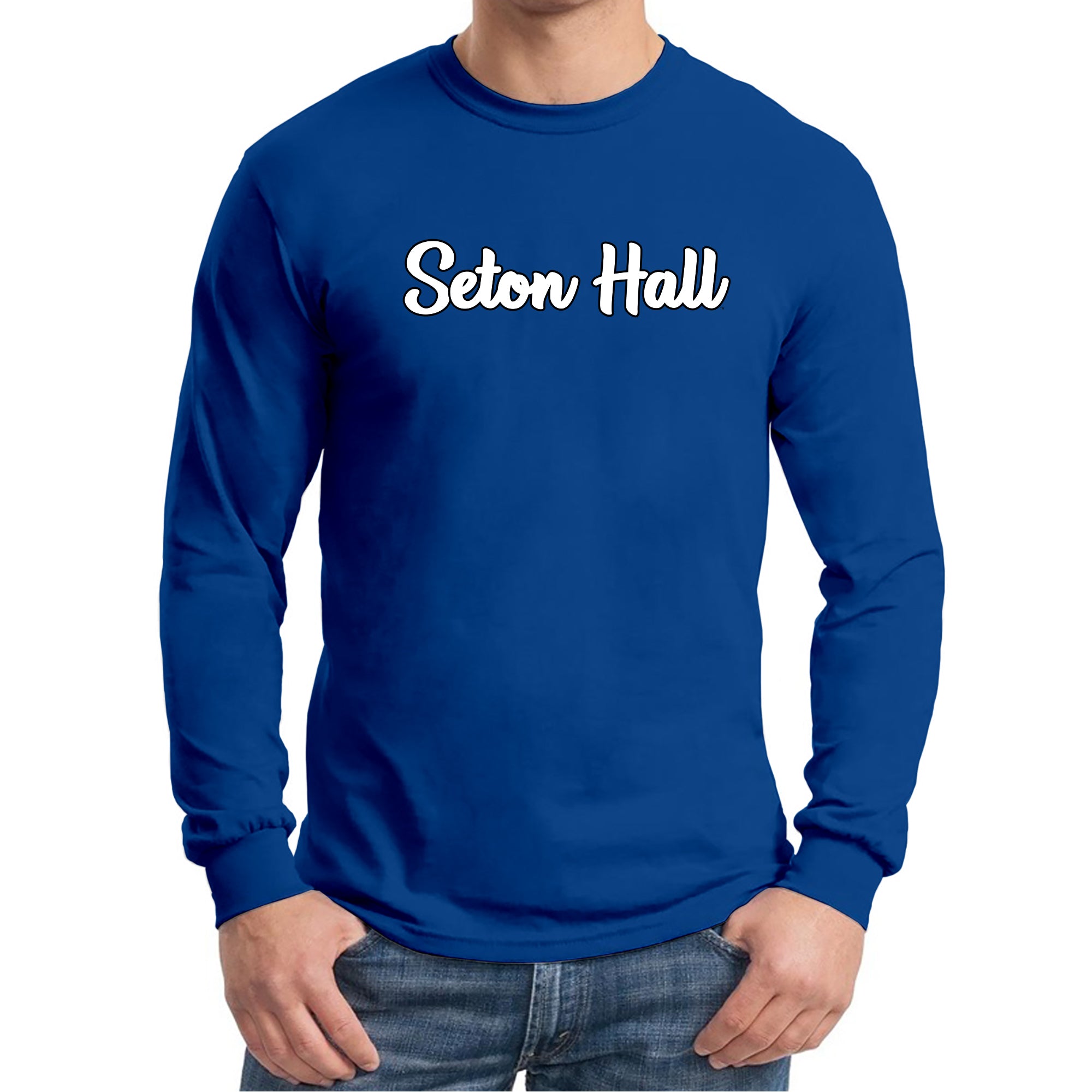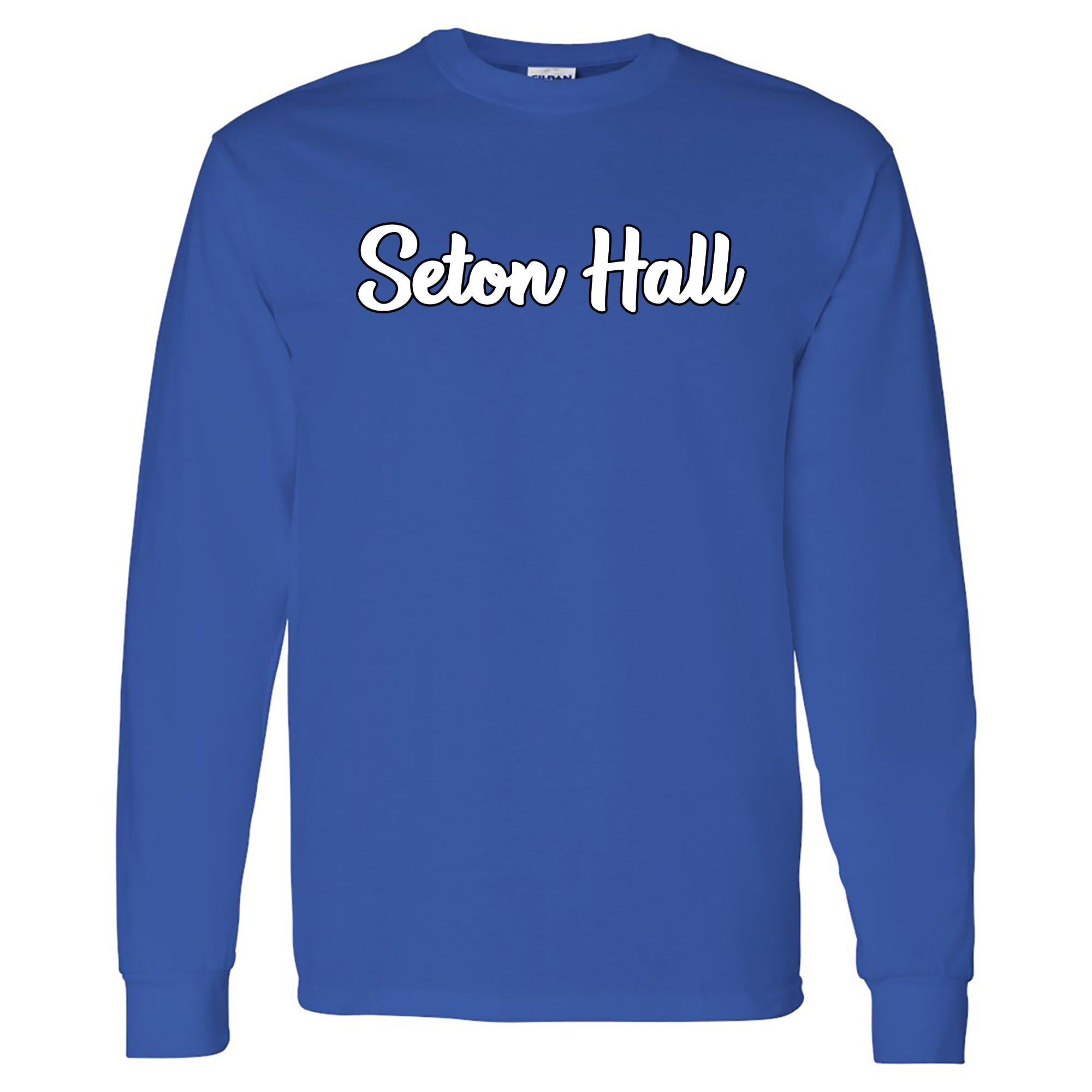 Seton Hall University Pirates Basic Script Cotton Long Sleeve T Shirt - Royal