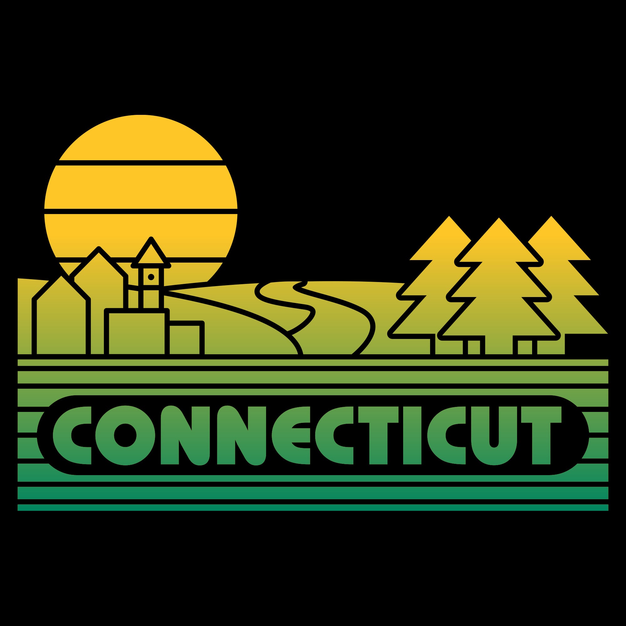 Connecticut Groovy Sunset T-Shirt - Black