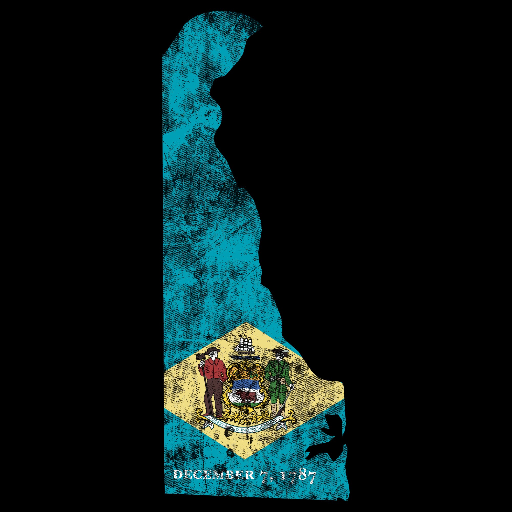 Delaware Distressed State Flag Outline NLA T-Shirt - Black