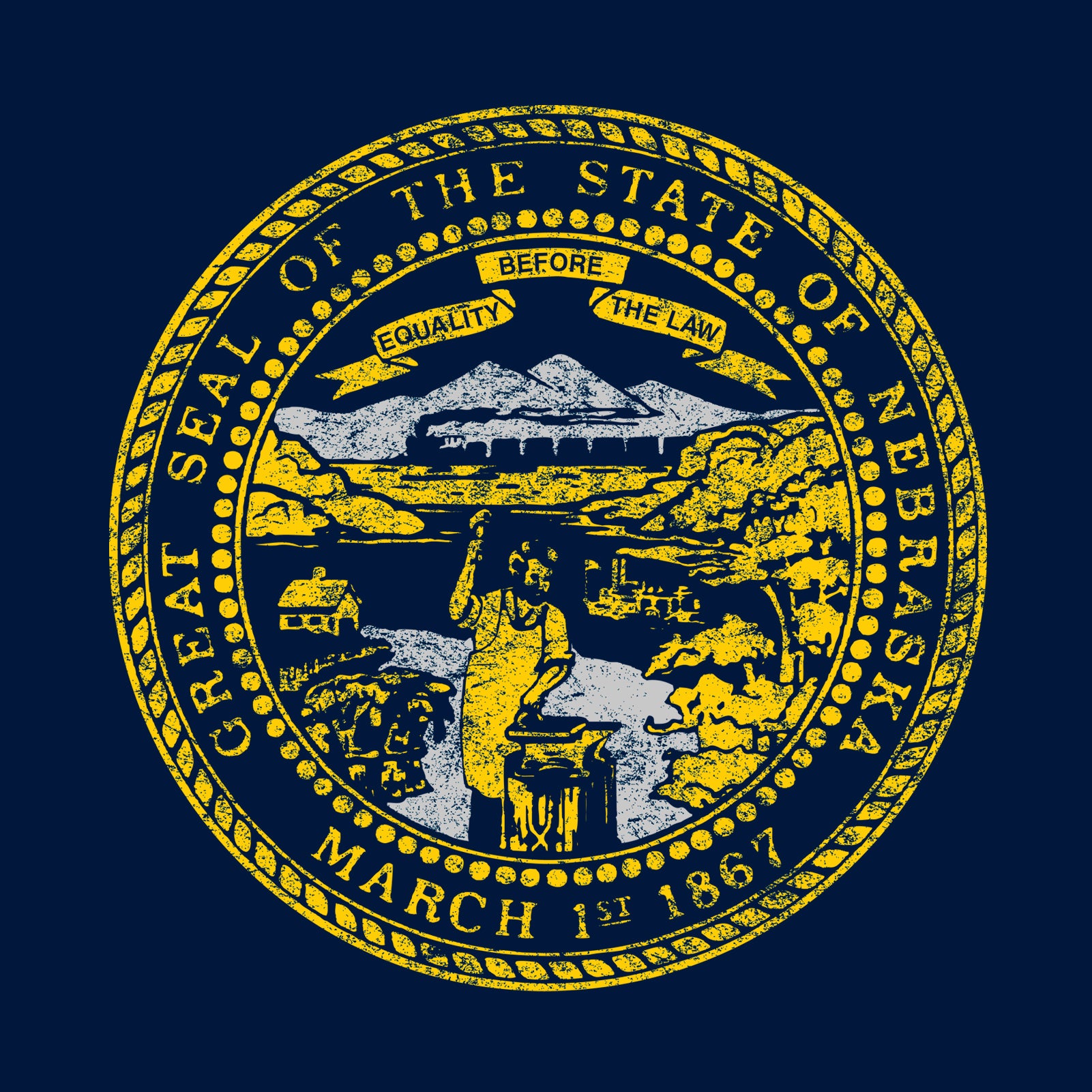 Nebraska State Flag NLA T-Shirt - Midnight Navy