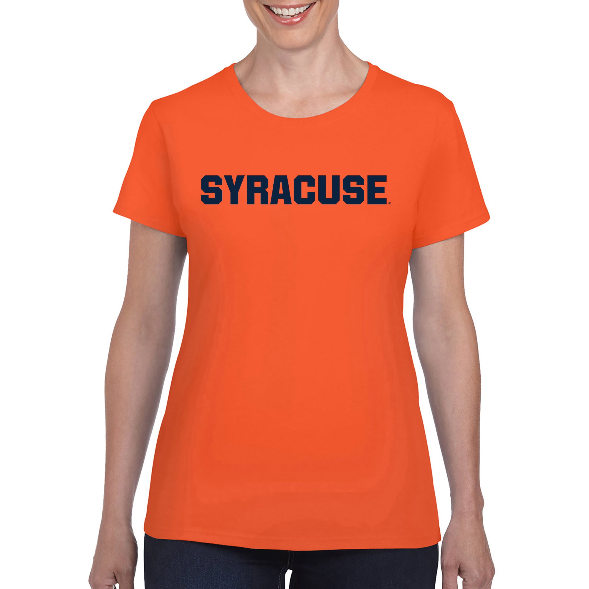 - Whether you are tailgating at a Syracuse football game, or in the stands cheering on the Orange Basketball team, show off your Syracuse University Pride with this great womens t-shirt.