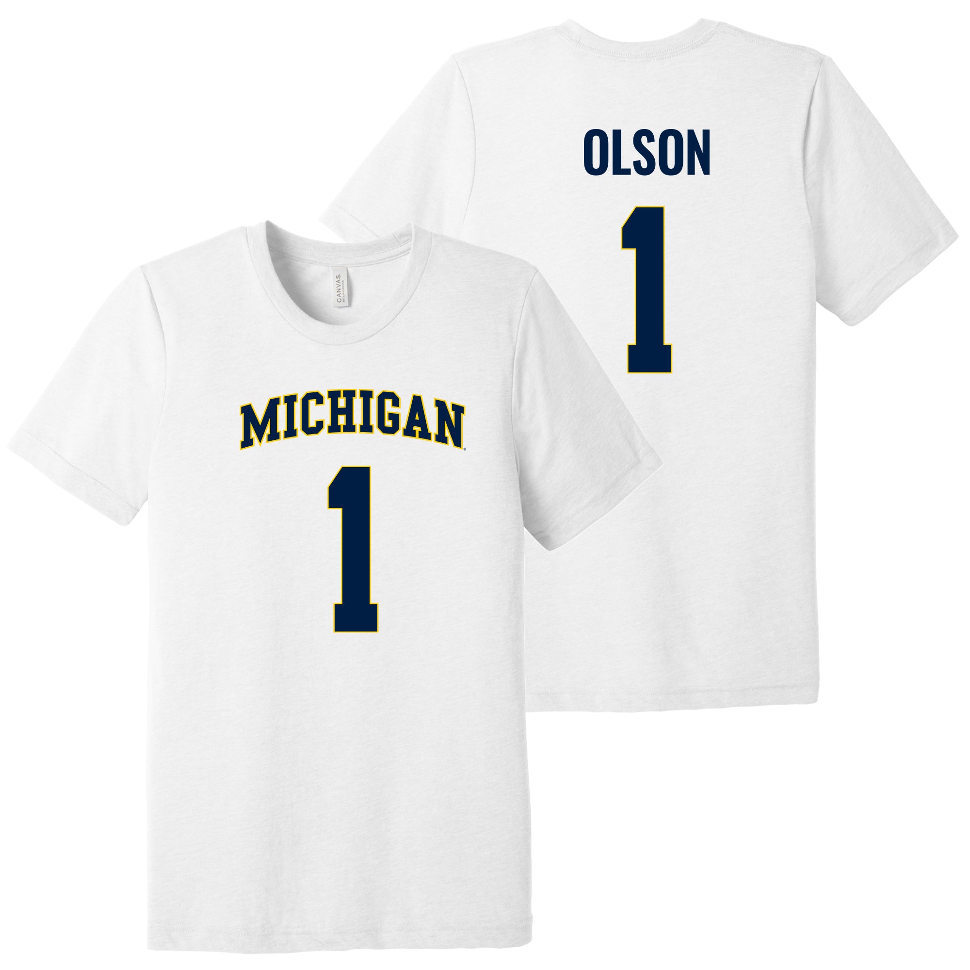 Michigan NIL Olson 1 Canvas Triblend T-Shirt - Solid White