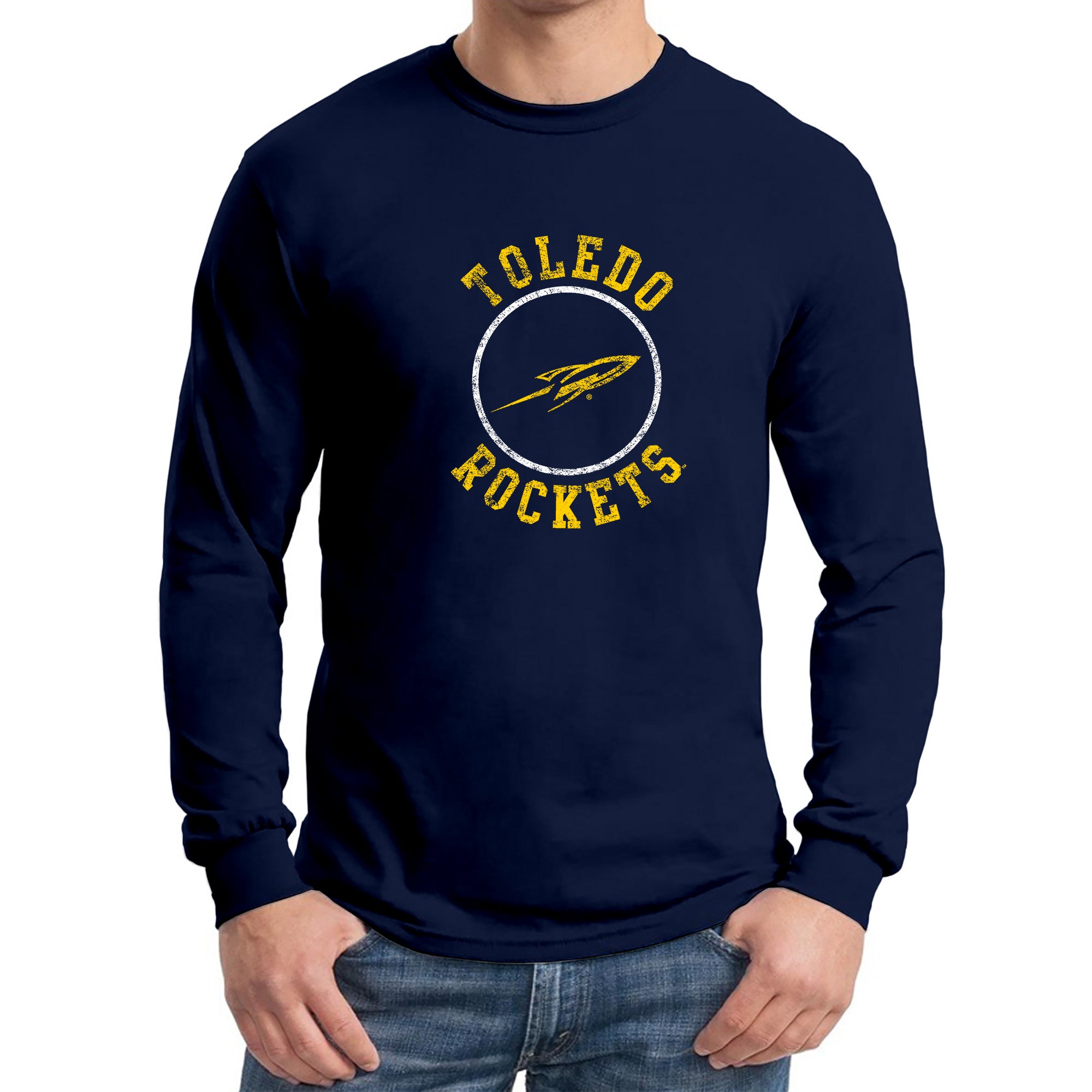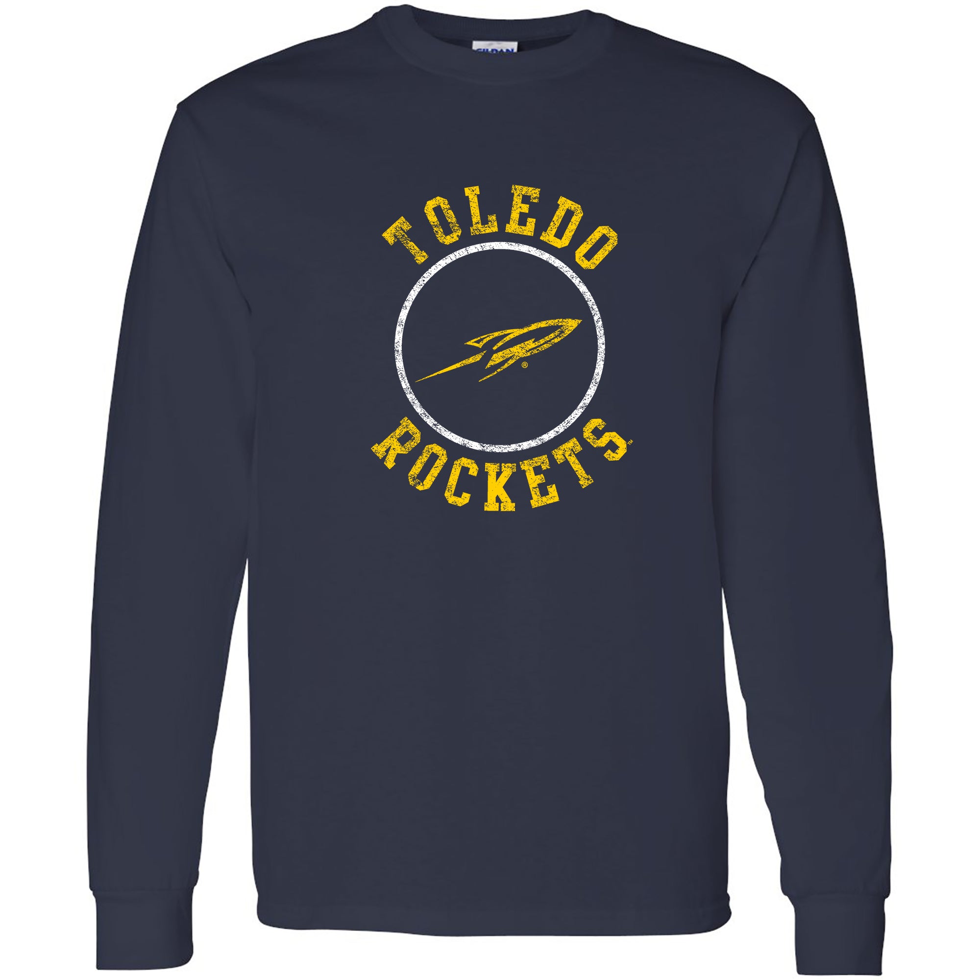 University of Toledo Rockets Distressed Circle Logo Heavy Cotton Long Sleeve T Shirt - Navy