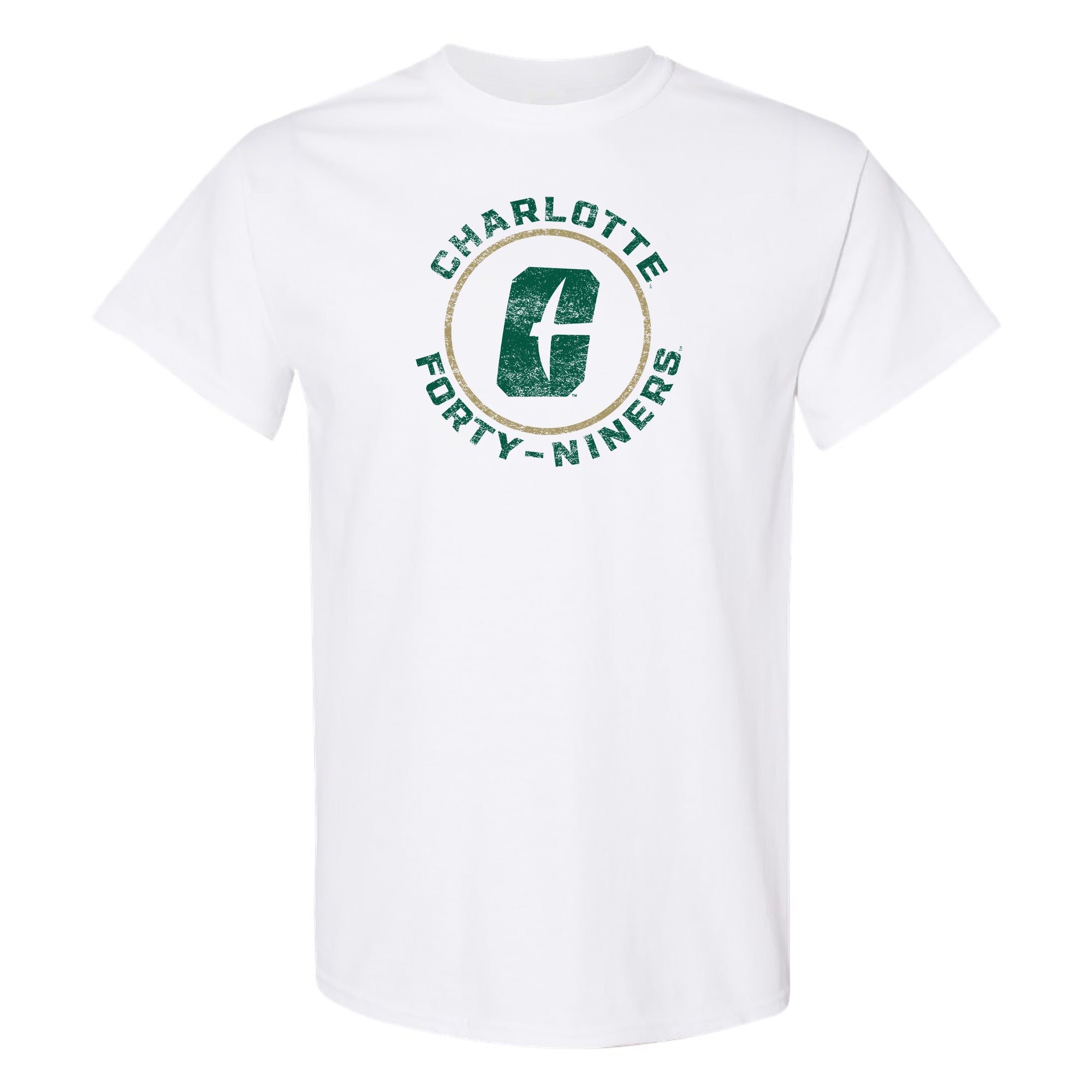 UNC Charlotte Forty-Niners Distressed Circle Logo Short Sleeve T Shirt - White
