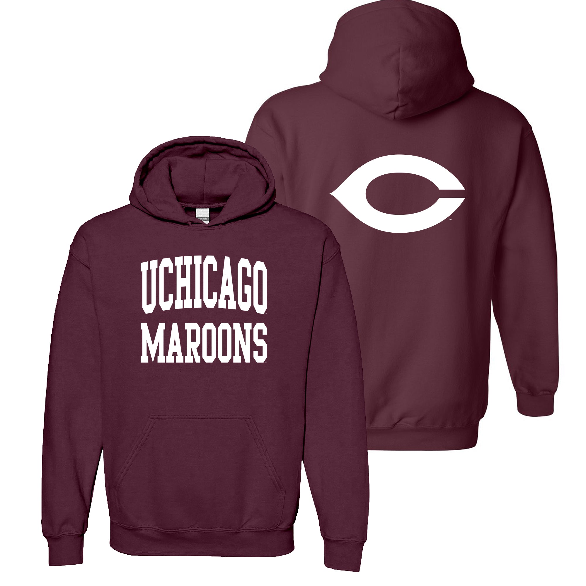 University of Chicago Maroons Front Back Print Heavy Blend Hoodie - Maroon