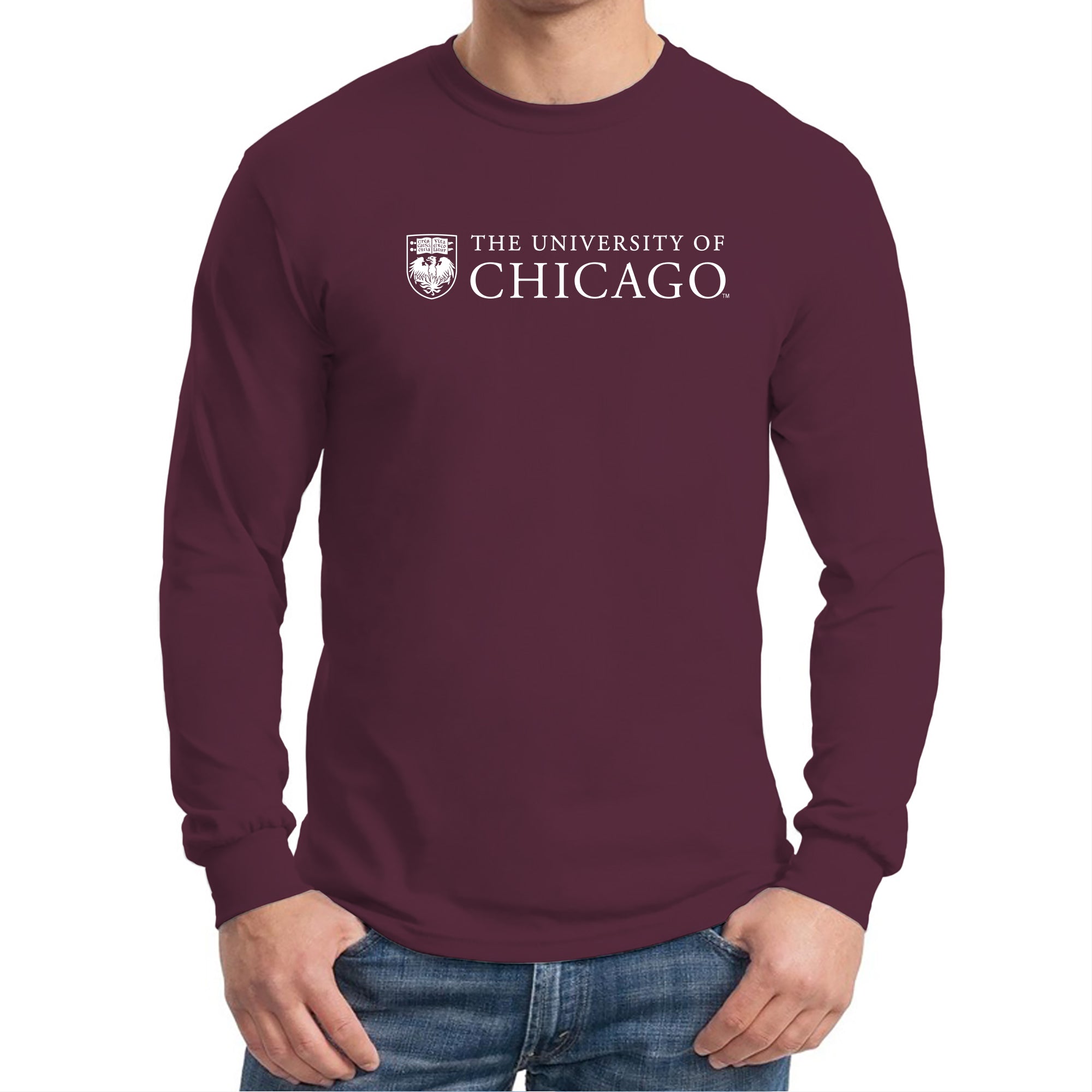 University of Chicago Maroons Institutional Logo Long Sleeve T Shirt - Maroon