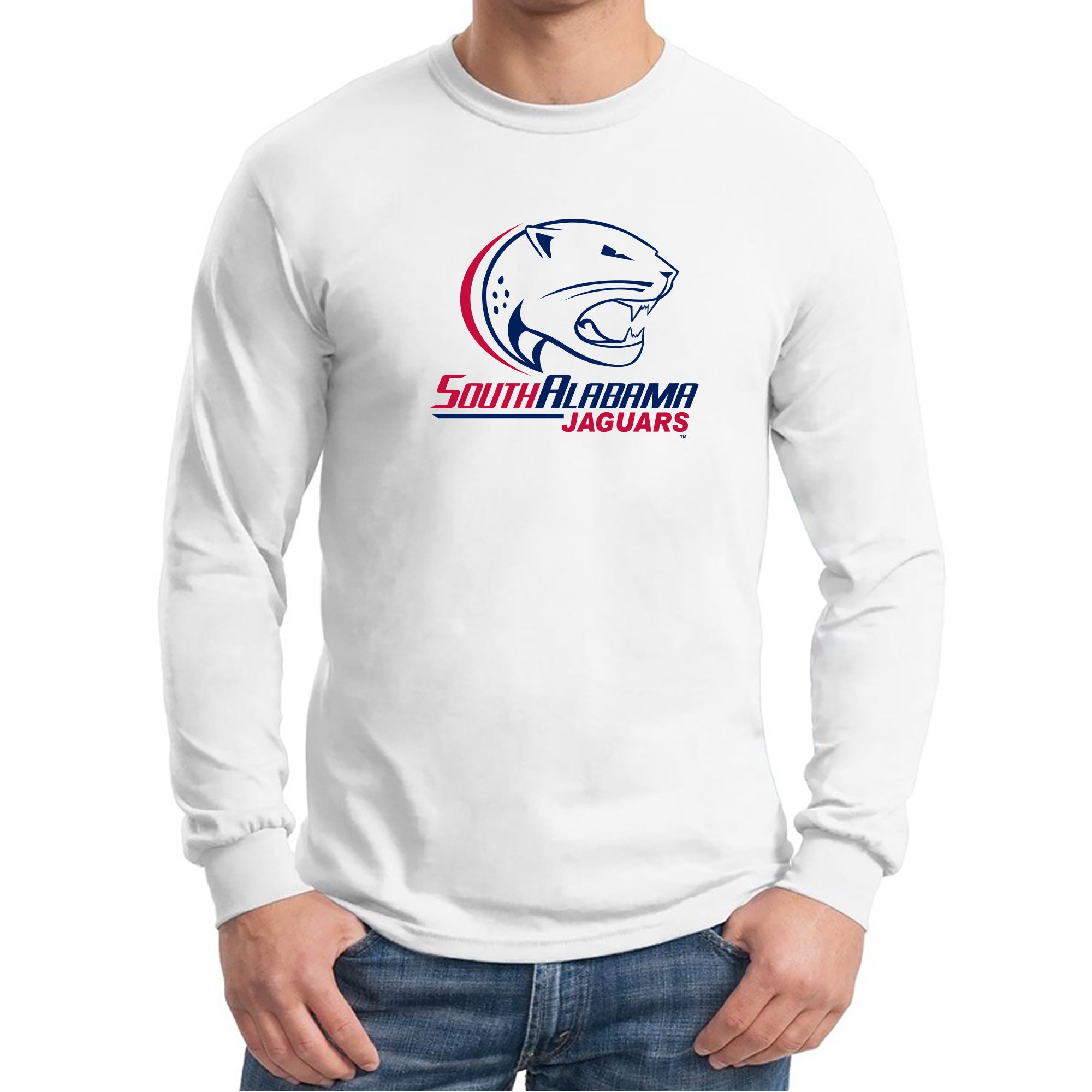 South Alabama Jaguars Primary Logo Long Sleeve T Shirt - White