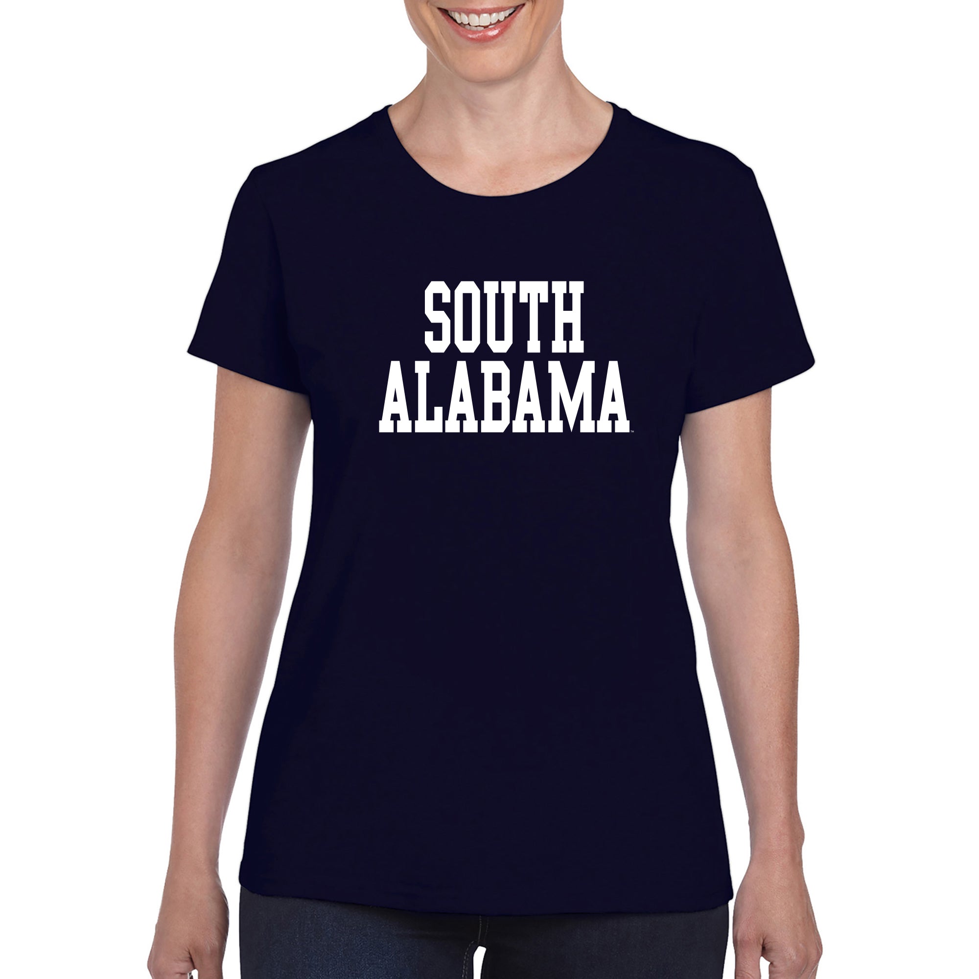 South Alabama Jaguars Basic Block Womens T Shirt - Navy