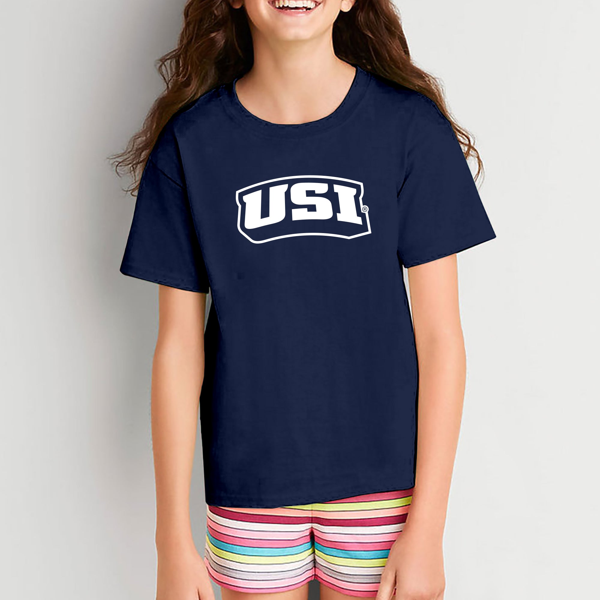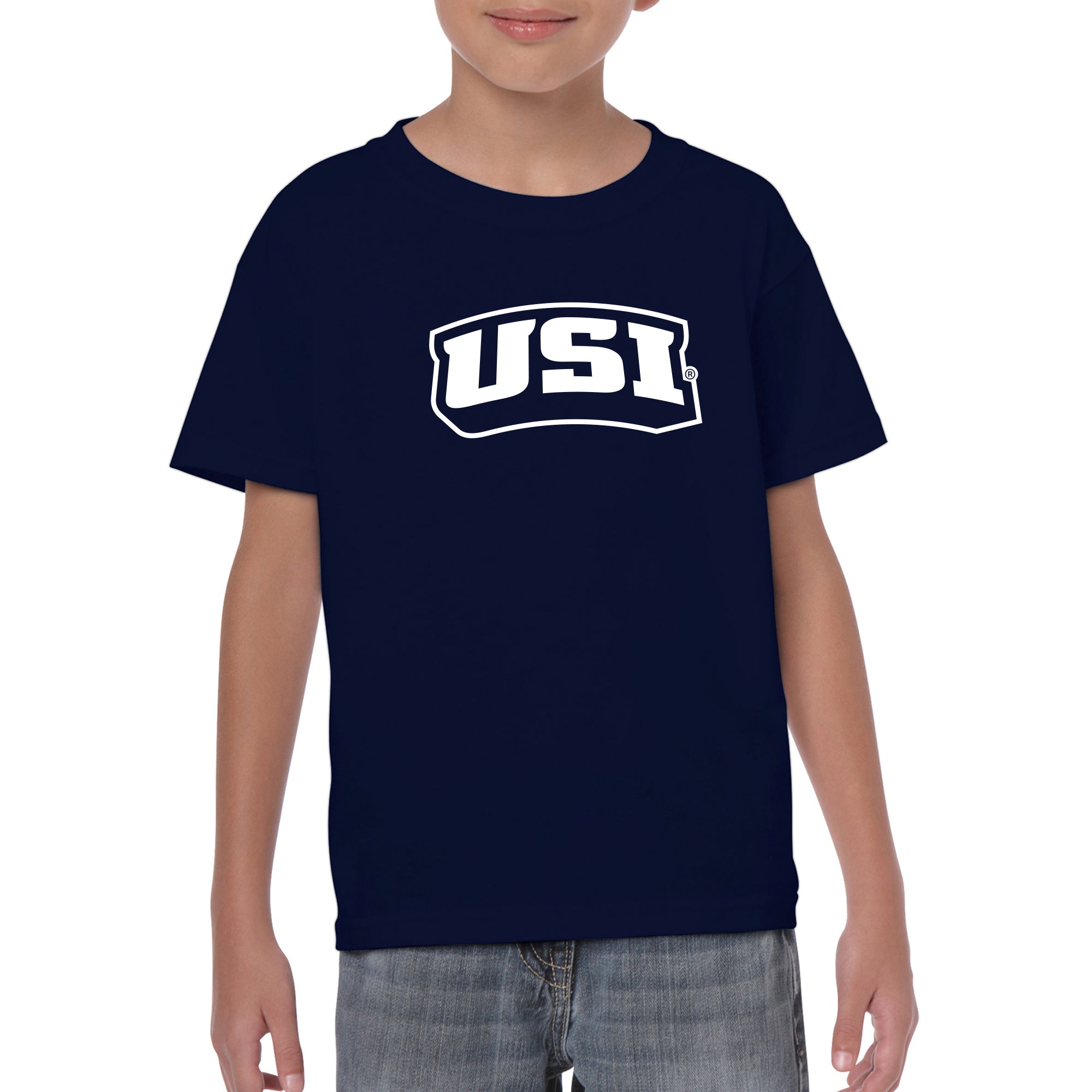 University of Southern Indiana Screaming Eagles Basic Block Cotton Short Sleeve Youth T Shirt - Navy