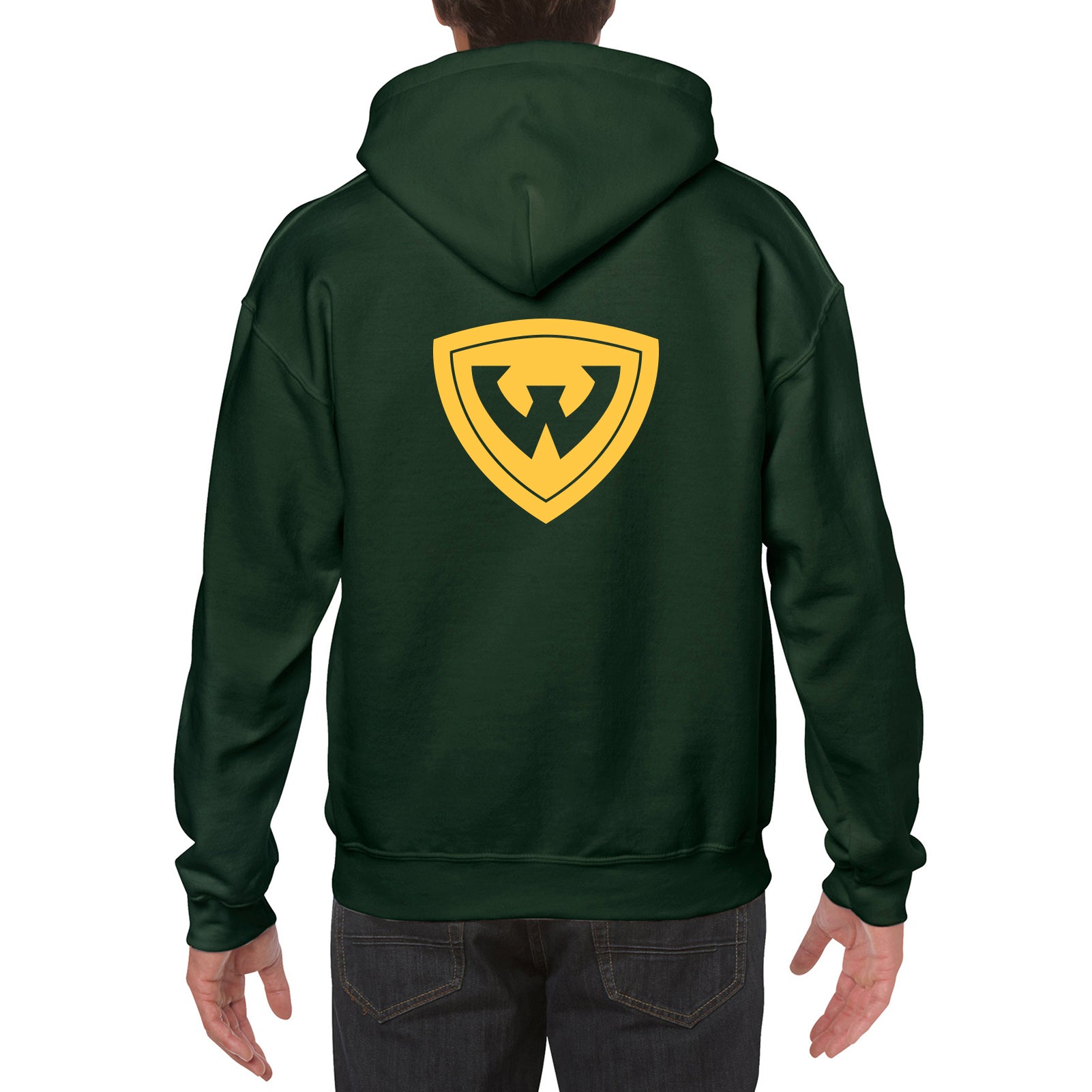 Wayne State University Warriors Front Back Print Heavy Blend Hoodie - Forest