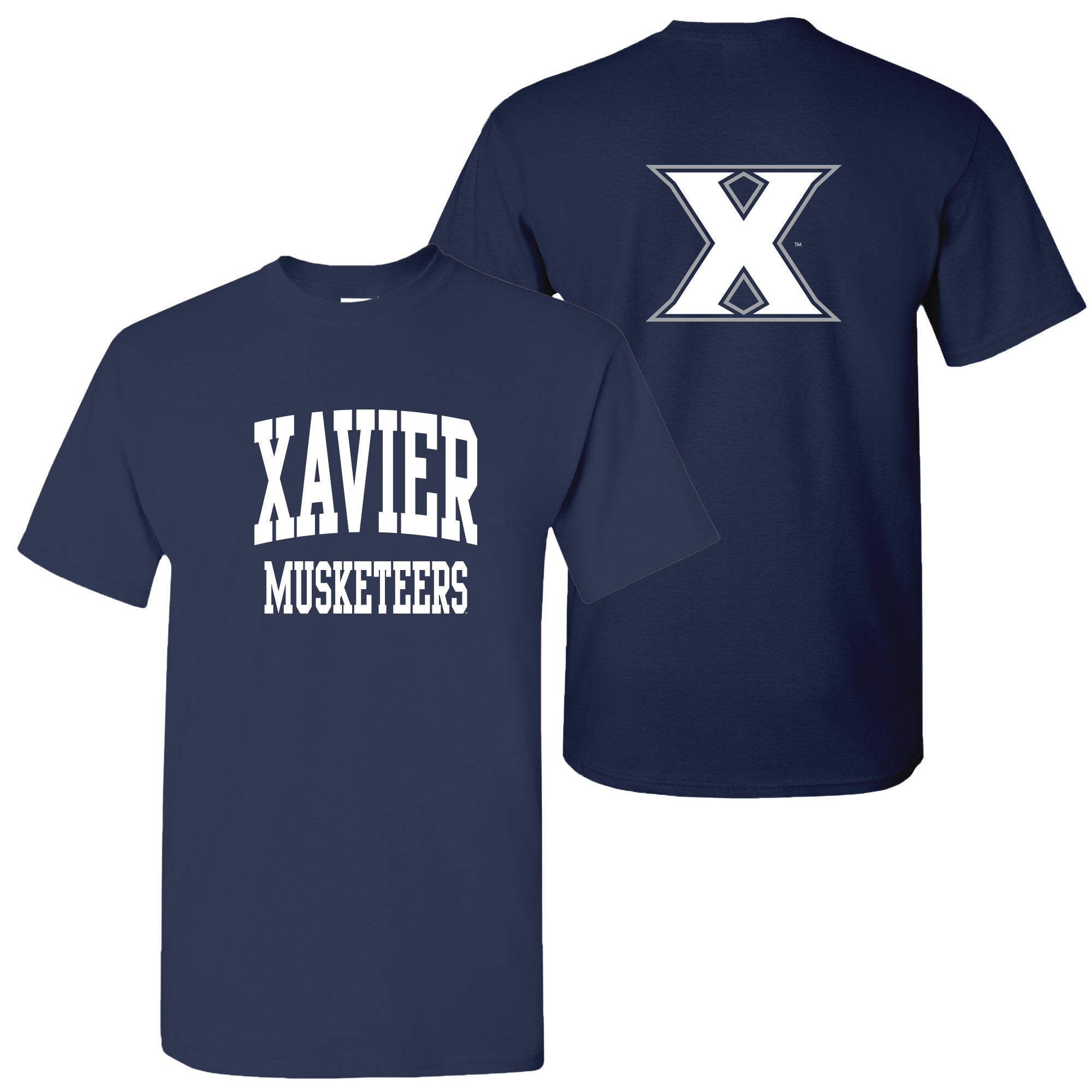 Xavier University Musketeers Front Back Print Short Sleeve T Shirt - Navy