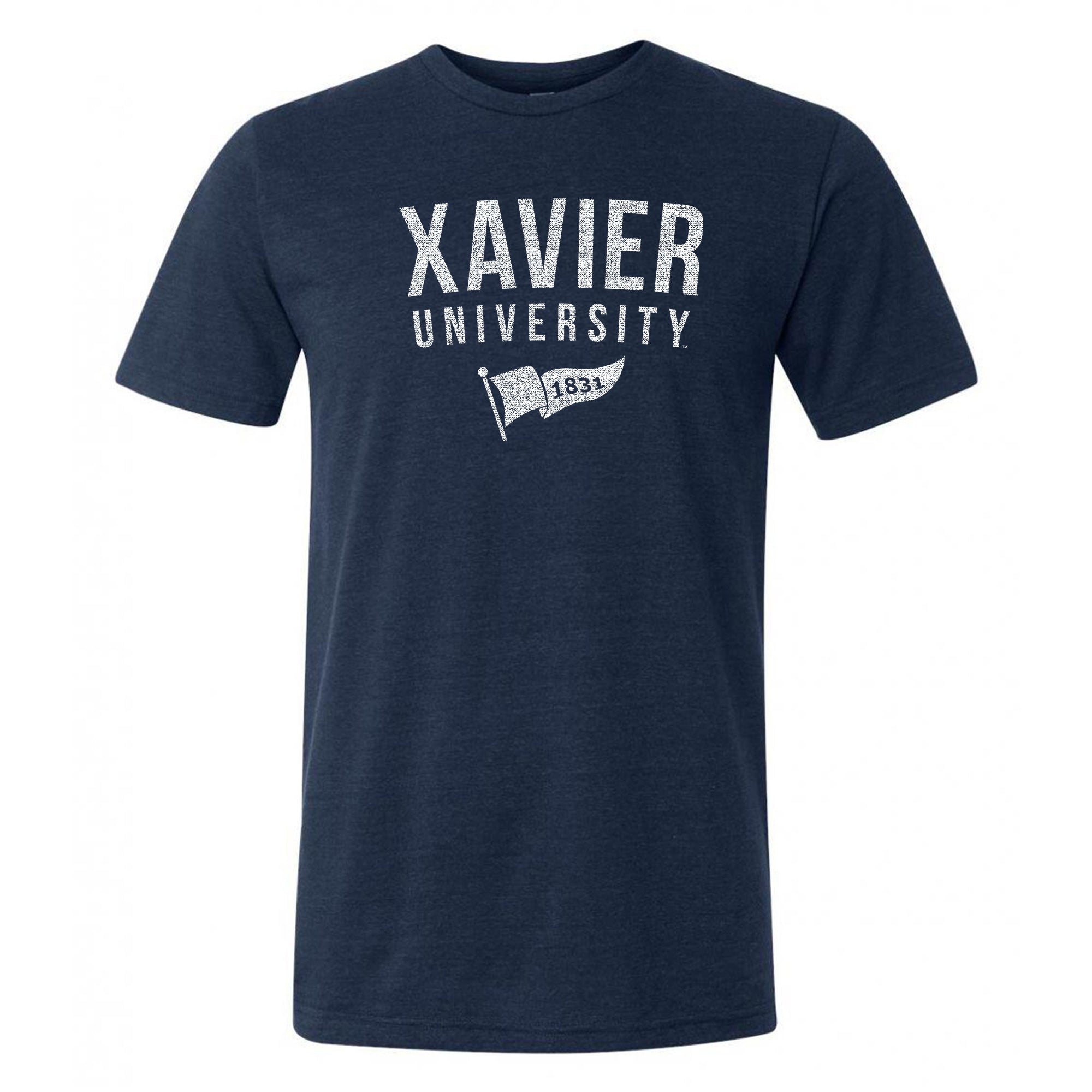 Xavier University Musketeers 1831 Banner Canvas Short Sleeve Triblend T-Shirt - Solid Navy